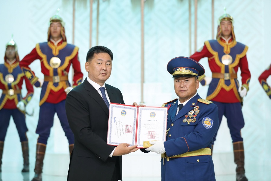 Онцгой байдлын байгууллагын 18 жилийн ойг тохиолдуулан Монгол Улсын Ерөнхийлөгч Ухнаагийн Хүрэлсүх зарлиг гарган эрхэлсэн ажил, салбартаа үр бүтээлтэй ажиллаж, улс орныхоо хөгжил дэвшилд бодитой хувь нэмэр оруулж буй алба хаагчдад цэргийн дээд цол хүртээж, төрийн одон, медалиар шагналаа.