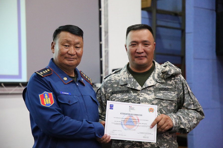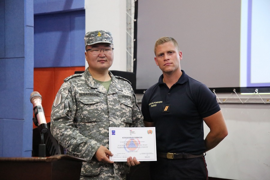 Монгол Улсын Засгийн газар, Бүгд Найрамдах Франц Улсын Засгийн газар хоорондын Иргэний аюулгүй байдлын салбарт хамтран ажиллах хэлэлцээрийн хүрээнд НОБГ-ын Гал түймэр унтраах, аврах ангийн алба хаагчдын сургалтыг зохион байгуулж, гэрчилгээг нь гардууллаа.