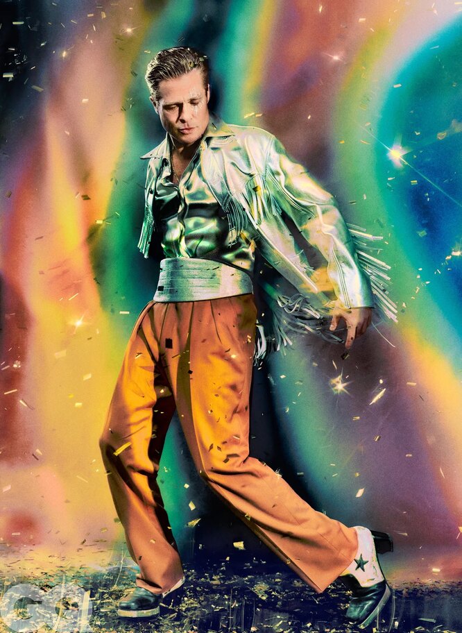 Тод өнгийн хувцас өмсөж, нүүрээ будсан Брэд Питтийн 1980-аад оны стилийг харуулсан зургийг загварын алдартай зурагчин орос бүсгүй авсан байна.