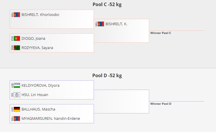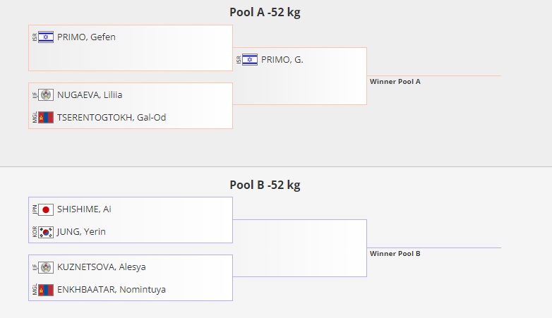А хэсгийг Будапешт-2022 ДАШТ-ий хүрэл медальт Израйлын Жефен Примо тэргүүлсэн. Түүнтэй Цэрэнтогтохын Гал-Од өрсөлдөнө.