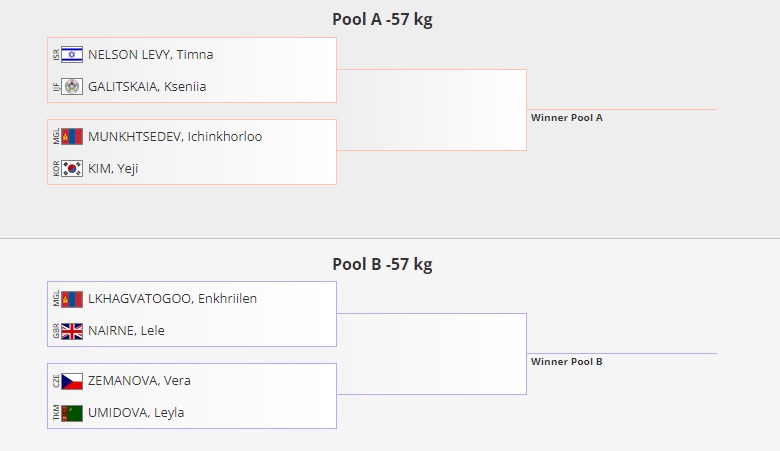 Энэ жинг багийн төрөлд олимпын хүрэл медаль хүртсэн Израйлын Тимна Нельсон Левай тэргүүлэн барилдах бөгөөд түүний хэсэгт Мөнхцэдэвийн Ичинхорлоо багтжээ.