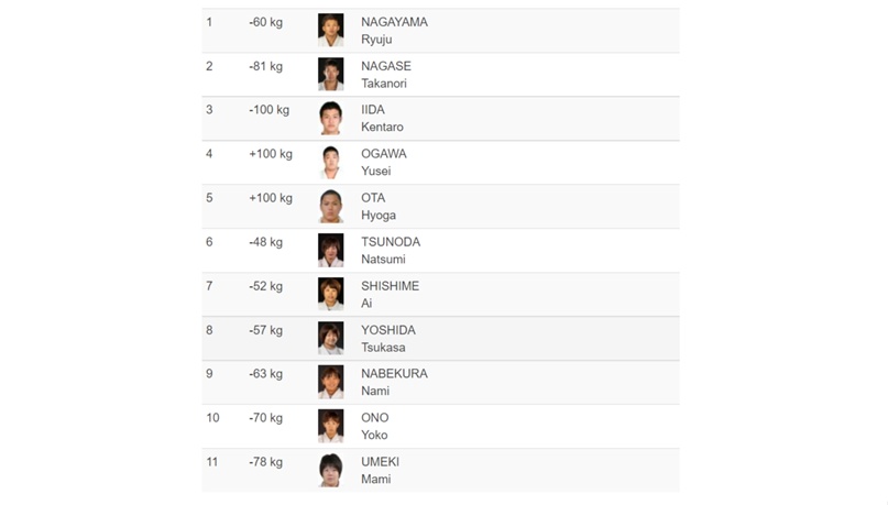 Харамсалтай нь олимпын хошой аварга Шёохэй Оно тав хоногийн өмнө оролцож чадахгүй болсноо зарласан. Гэхдээ Японы багт олимпын аварга Таканори Нагасэ, дэлхийн аваргын медальт Рюүжү Нагаяма болон Кентаро Иида, Юсей Огава, Хъега Ота, Нацүми Цүнода, Аи Шишимэ, Цүкаса Ёшида, Нами Набекүра, Ёко Оно, Мами Үмеки нарын алдартнууд бий.