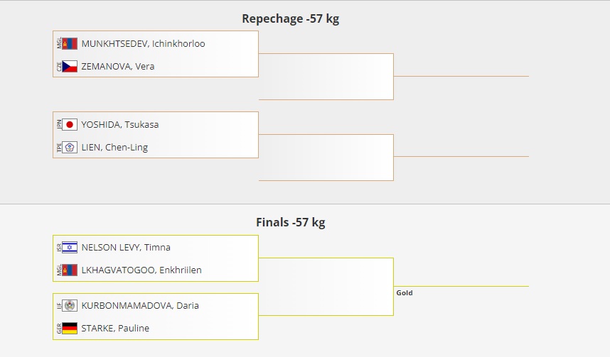 Энэ жингийн А хэсгийг Израйлын Тимна Нельсон Леви тэргүүллээ. Түүнд ялагдсан Мөнхцэдэвийн Ичинхорлоо дагах барилдаанд Чехийн Земановатай барилдах боллоо.