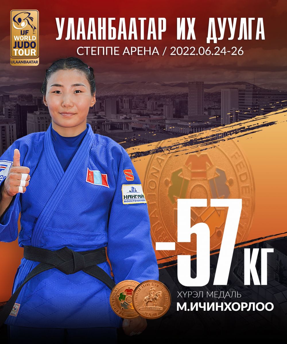 Мөн энэ жинд "Женко" клубийн тамирчин ОУХМ М.Ичинхорлоо хүрэл медаль хүртэж, Монгол Улс эхний өдрийн байдлаар 2 алт, 2 мөнгө, 4 хүрэл медаль хүртсэн амжилтаар тэмцээнийг тэргүүлж байна.