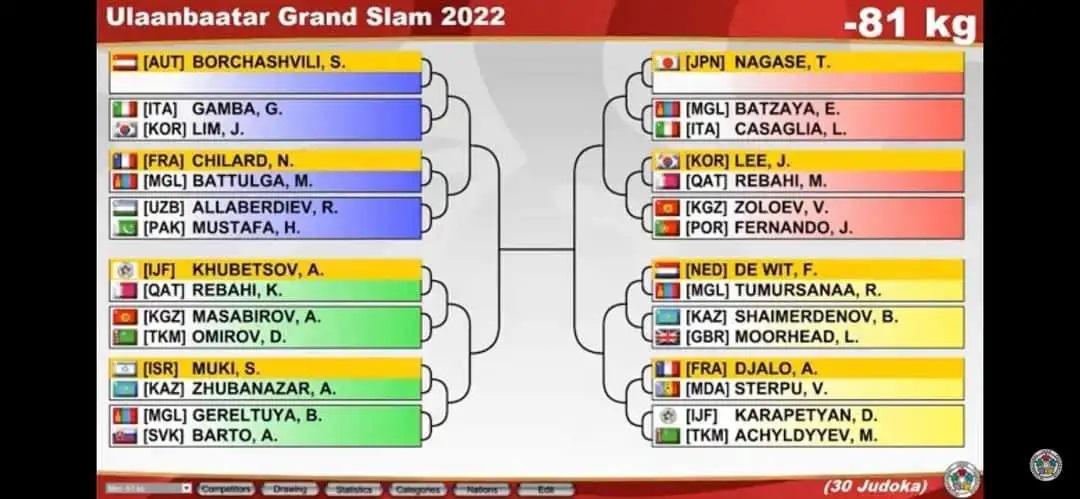 Энэ жинд хамгийн олон буюу 30 жүдоч барилдана. Токио-2022 олимпын хүрэл медальт Австрийн Шамил Борчашвили, ОХУ-ын Алан Хубецов, дэлхийн аварга Израйлын Саги Муки, олимп, дэлхийн аварга Японы Таканори Нагасе, ДАШТ-ий хүрэл медальт Нидерландын Фрэнк Де Вит нарын алдартнууд хүрэлцэн иржээ.