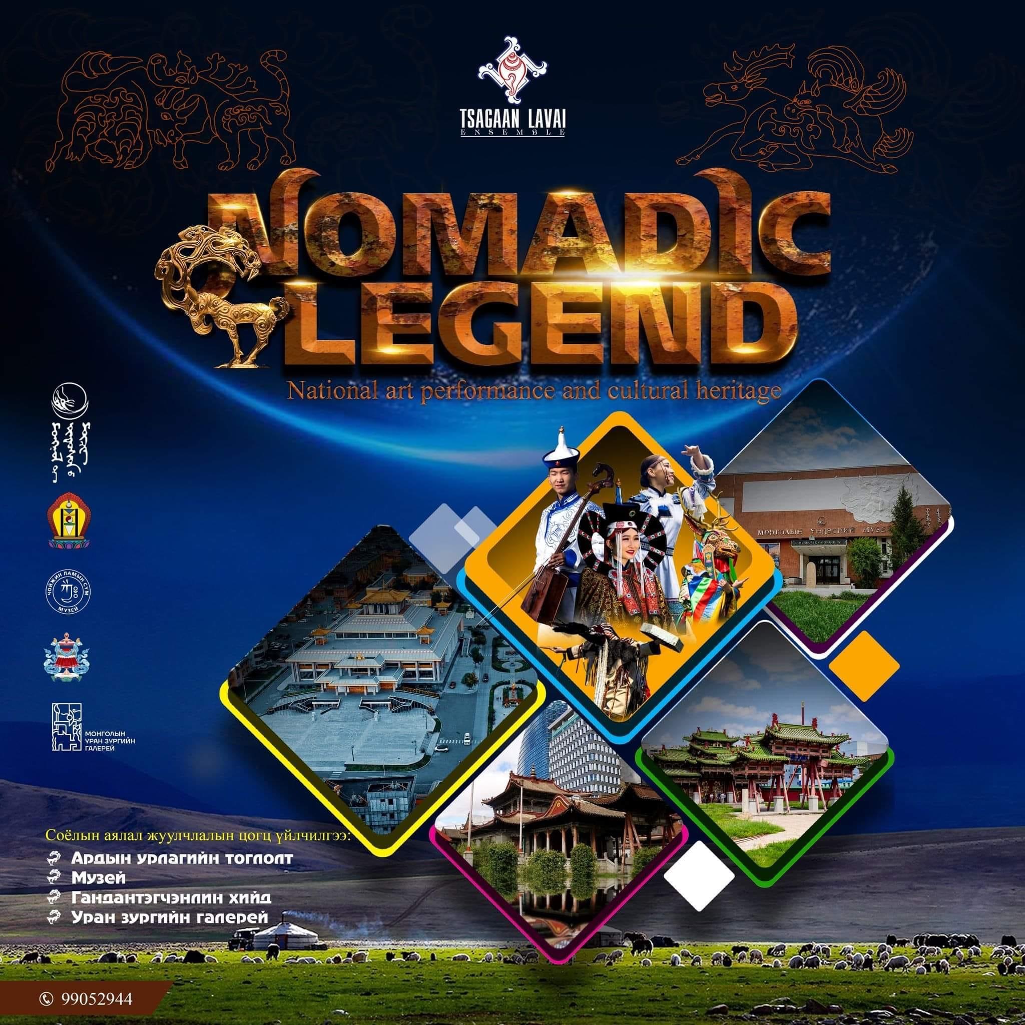Монголд ирсэн жуулчдын аялалын хөтөлбөрт  ардын урлаг тоглолт, музей, хийд, галерей зэрэг  соёл урлагийн байгууллагууд, соёлын өвийн үзвэр, үйлчилгээ багтдаг билээ. Аялал жуулчлалын салбараа дэмжин  ажиллах, Соёлын аялал жуулчлалыг хөгжүүлэх бодлогын хүрээнд Соёл урлаг, соёлын өвийн  6 байгууллагын хамтарсан үйлчилгээ “NOMADIC LEGEND” ардын урлагийн тоглолт, өв соёлын хөтөлбөр энэ зун хэрэгжинэ.  Үүнд Цагаан лавай чуулга, Монголын үндэсний музей, Богд ордон музей, Чойжин ламын сүм музей,   Гандантэгчэнлин хийд, Монголын уран зургийн галерей үйлчилгээ багтах юм байна.