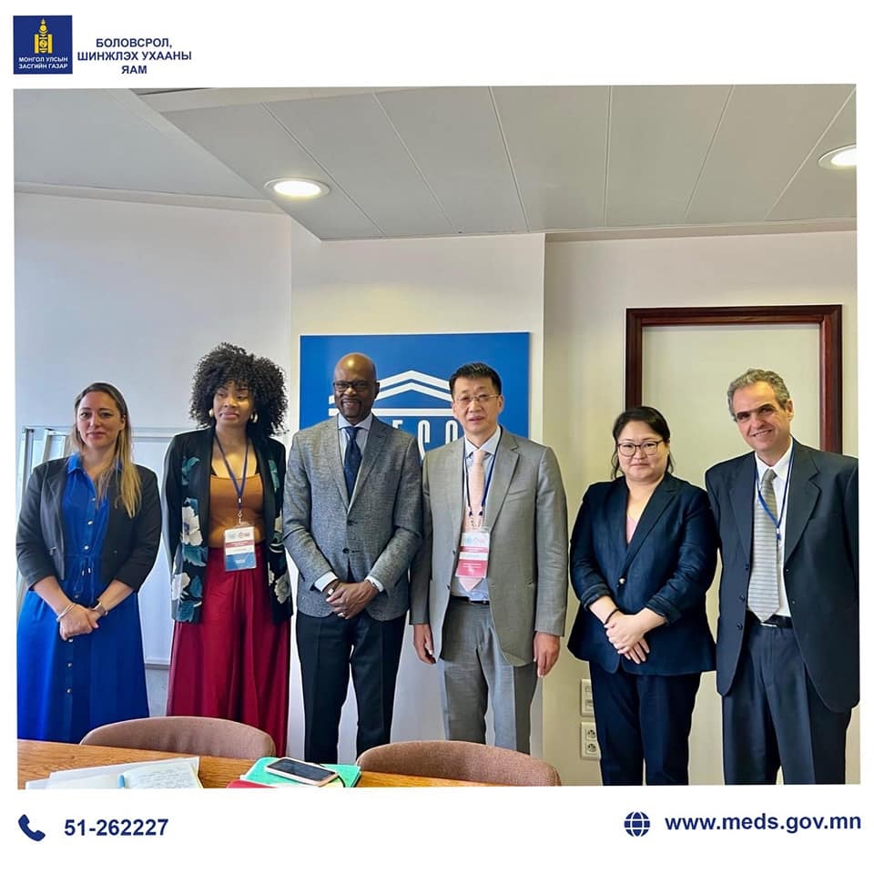 Боловсрол, шинжлэх ухааны сайд Л.Энх-Амгалан Парис хотод ажиллах үеэрээ эхний уулзалтаа ЮНЕСКО-гийн Боловсролын олон улсын хороо буюу "International Bureau for Education"-ны захирал Яао Ядотой хийлээ.