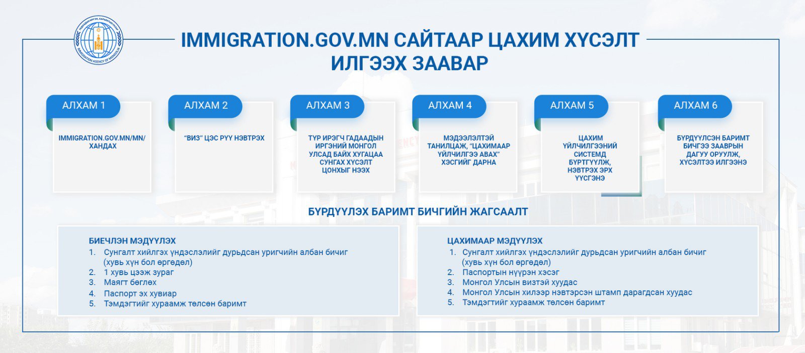 Түр ирэгч гадаадын иргэний виз сунгалтын хүсэлтийг цахимаар авч байна