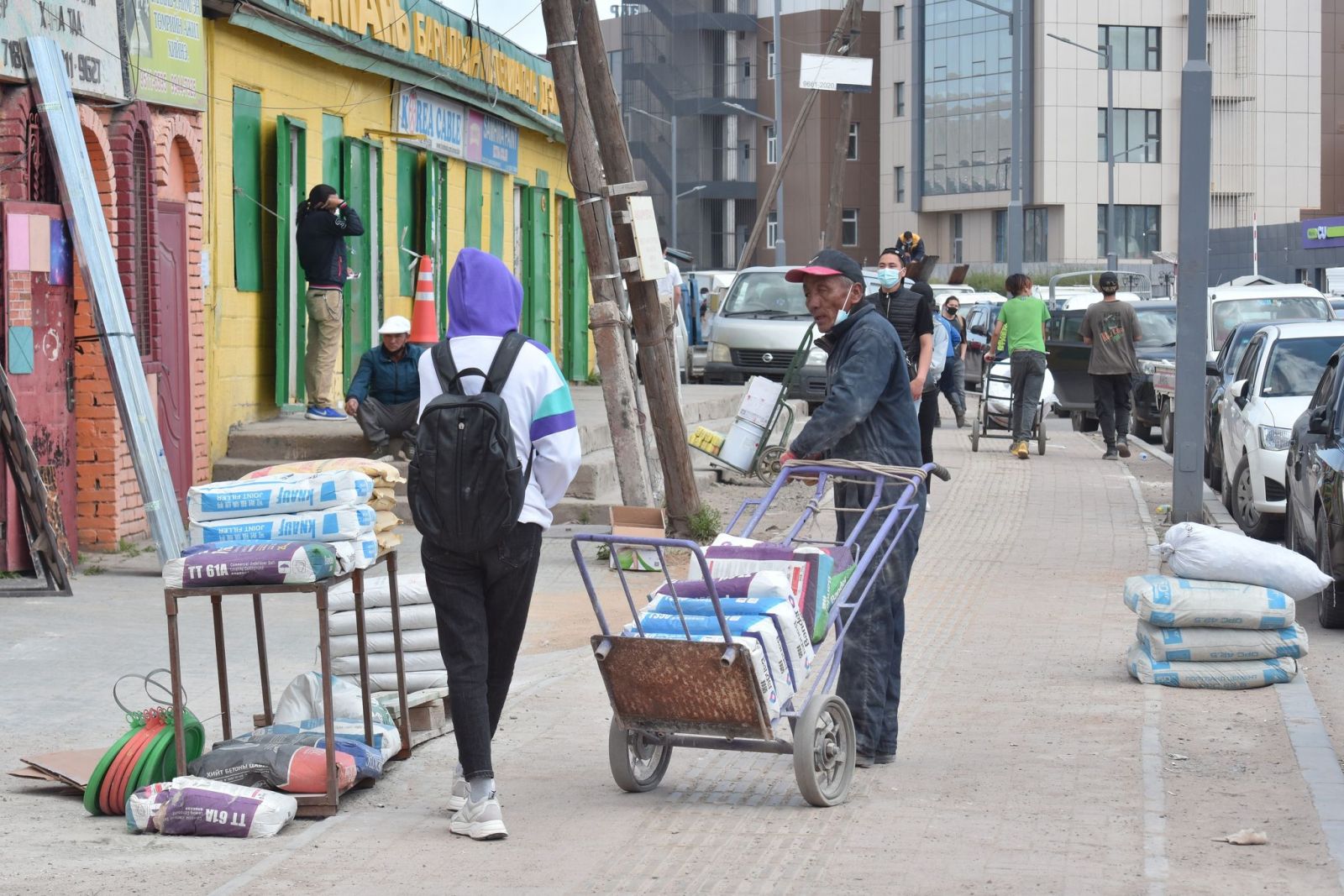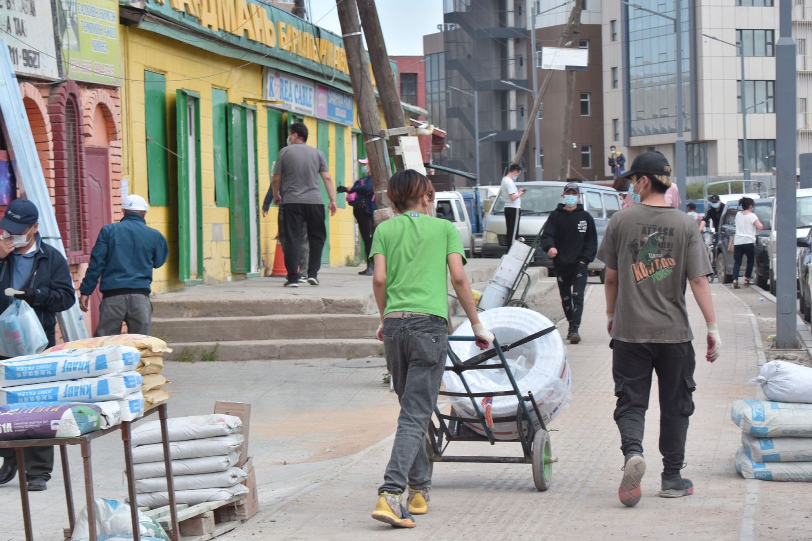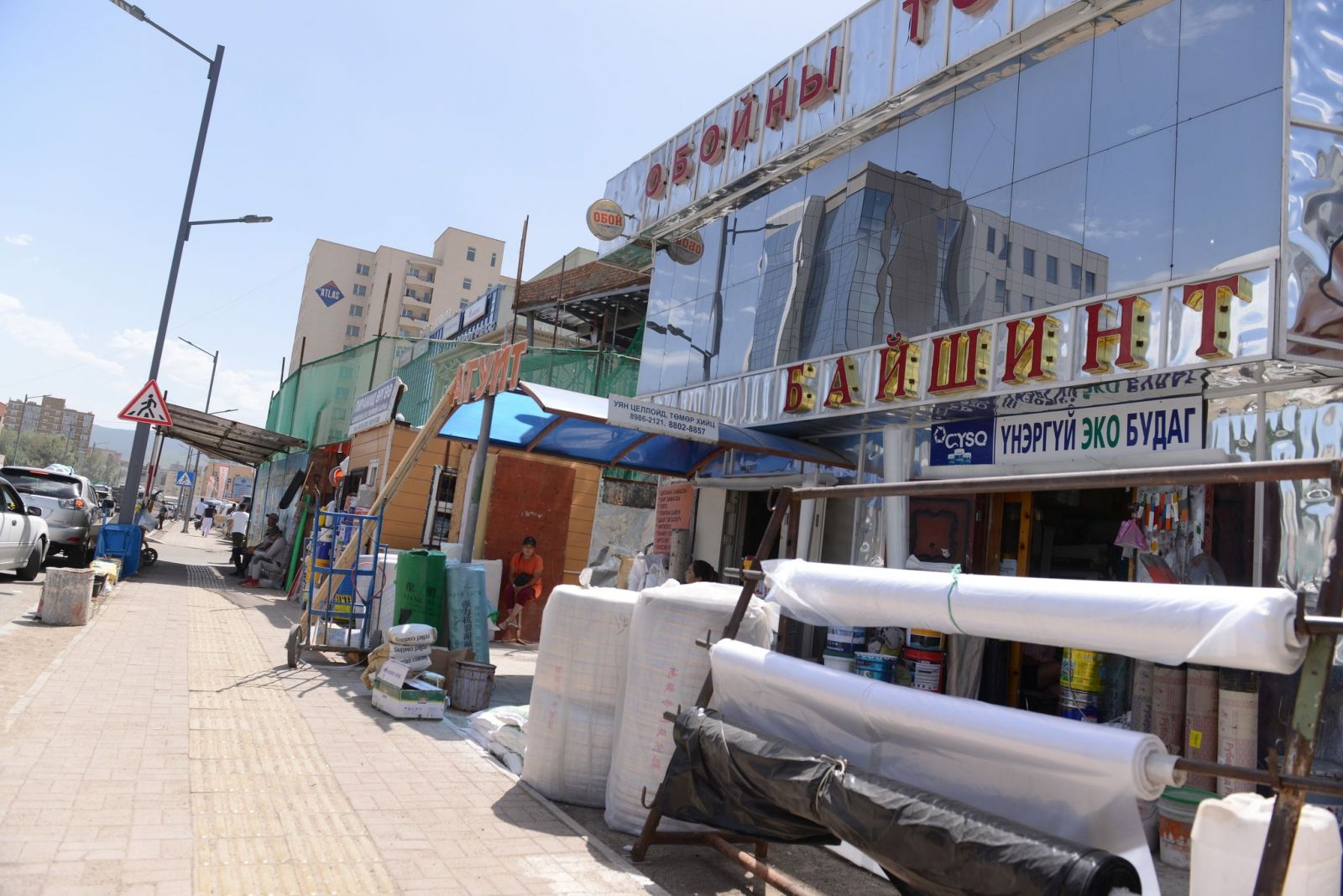 Ингээд бид буцаад барилгын материалын худалдааны гудамж руу ороход хаашаа л харна нарийн ширхэгтэй цагаан шороо, шил болон мод цаашлаад хуванцарын үртэс, хаягдал энд тэндгүй хийссэн байдал ажиглагдав. Угаас байнгын авто замын түгжрэлтэй байдаг энэ хэсэгт зам дагуух лангуу, агуулах бүрийн урд нэг нэг ачааны машин зогссон нь түгжрэл үүсгэж мөн явган зорчих иргэдийн ая тух, аюулгүй байдалд төвөг учруулдаг байна.