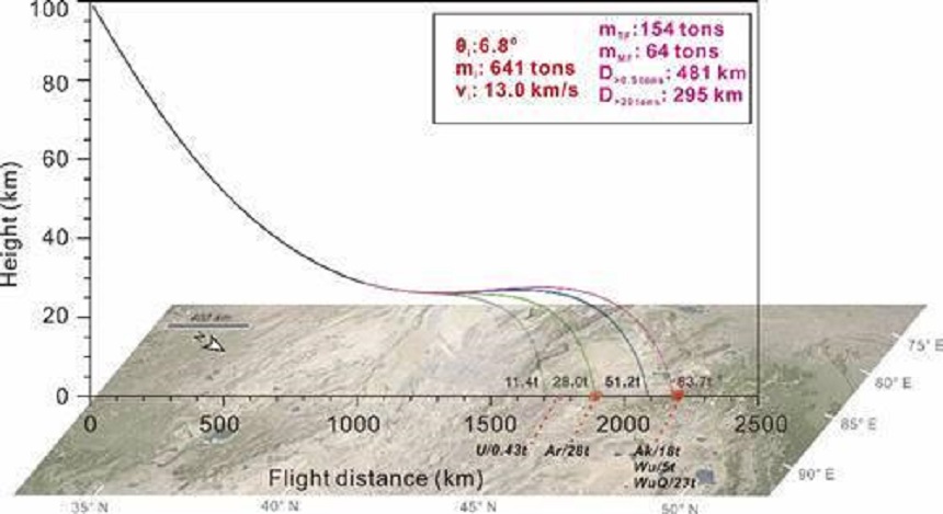 БНХАУ-ын ШУӨЗО-ны Алтайн говь цөлд 430 км үргэлжилсэн солирын борооны бүсэд нэгэн жижиг астероид дэлхийтэй маш бага өнцөг хавчин орж ирсэн нь яг л нуурын толионд чулуу хөвүүлэн шидсэнтэй адилхан манай гаригийн газрын гадаргад буужээ гэж Хятадын Шинжлэх ухааны академийн Цижиншань одон орон судлалийн төвийн эрдэмтэд болон гадаадын эрдэмтэд хамтын судалгаагаараа тогтоожээ. Тэд энхүү судалгааны дүгнэлтээ олон улсын эрдэм шилжилгээний "scientific advancement" сэтгүүлд нийтэлсэн байна.