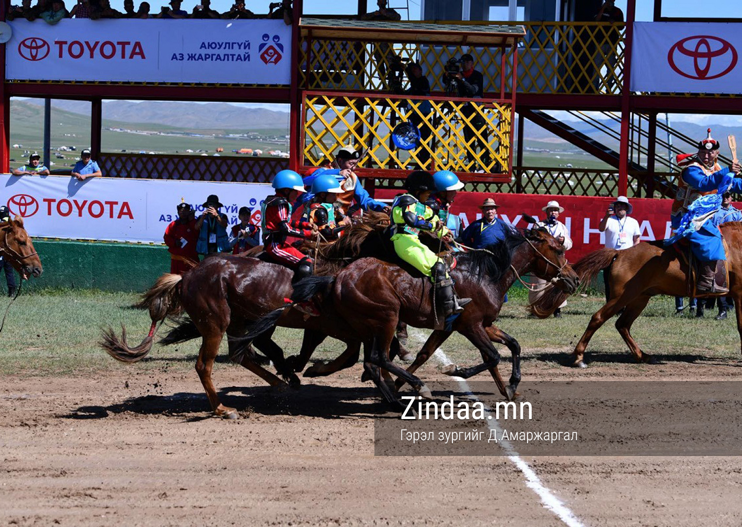 Үндэсний их баяр наадмын хязаалан насны морьдын уралдаанд Сэлэнгэ аймгийн Баруун бүрэн сумын Данзандоржийн Одхүүгийн бундан тамгатай зээрд үрээ торгон жолоогоо өргүүлсэн юм. Морийг 519 дугаартай, Энхбаатарын Зол-Эрдэнэ хэмээх 12 настай хүү унаж, хурдлуулсан.