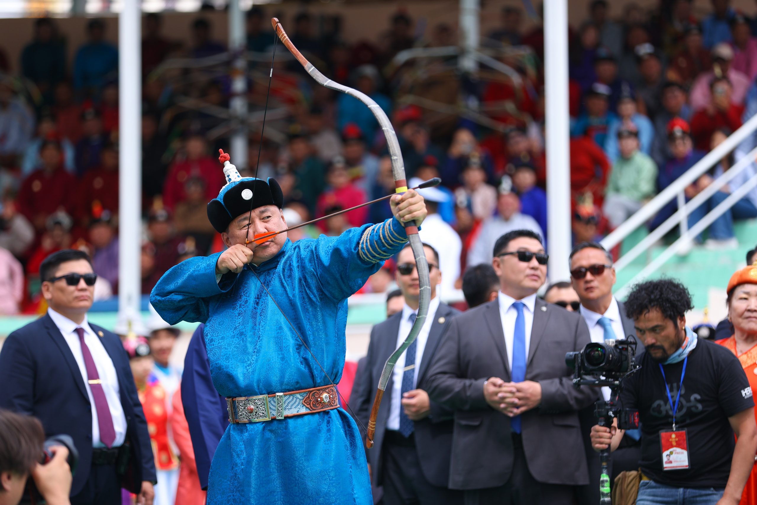 Монгол Улсын Ерөнхийлөгч хоёр сум тавьснаас нэг удаа онолоо. Үүний дараа тэрбээр шагайн асарт саатаж, харваачидтай мэндчилэв.