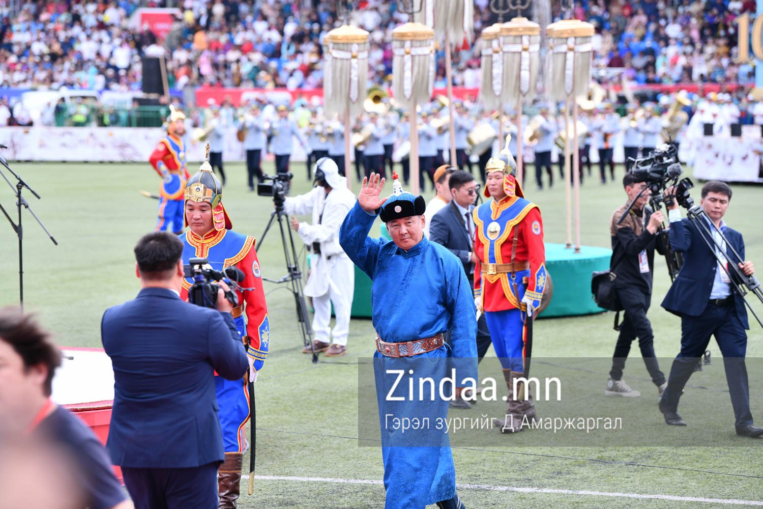 Монгол Улсын Ерөнхийлөгч Ухнаагийн Хүрэлсүх Тулгар төрийн 2230, 2231, Их Монгол Улс байгуулагдсаны 815, 816, Үндэсний эрх чөлөө, тусгаар тогтнолоо сэргээн мандуулсны 110, 111, Ардын хувьсгалын 100, 101 жилийн ой, Үндэсний их баяр наадмын нээлтийг үзэж сонирхсоныхоо дараа үндэсний сурын талбай болон шагайн харвааны асарт зочиллоо.