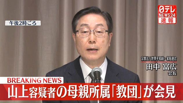 Үүнтэй холбогдуулан Family Federation for World Peace and Unification байгууллагаас хэвлэлийн бага хурал хийлгэж, тайлбар өглөө. Тус байгууллагын тэргүүн Танака Томихиро юуны өмнө хэрэгтний ээж байгууллагынх нь гишүүн гэдгийг баталлаа.