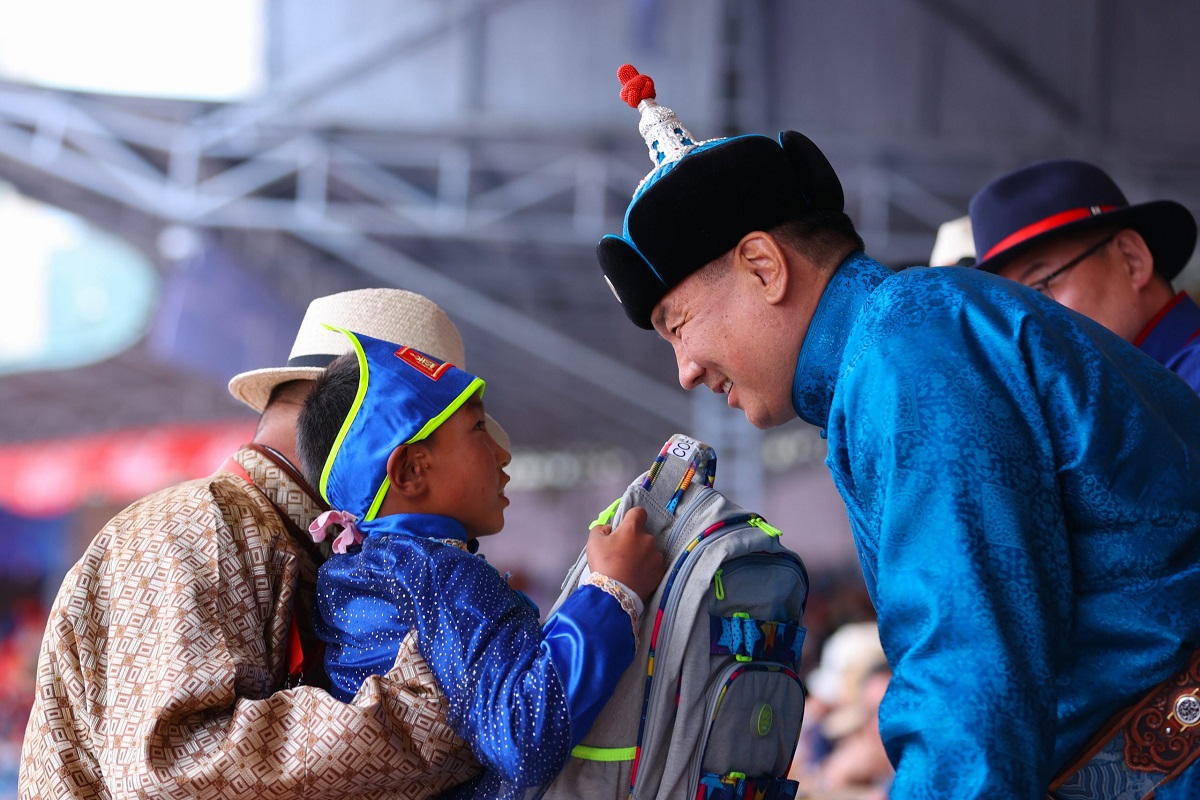 Монгол Улсын Ерөнхийлөгч Ухнаагийн Хүрэлсүх Тулгар төрийн 2230, 2231, Их Монгол Улс байгуулагдсаны 815, 816, Үндэсний эрх чөлөө, тусгаар тогтнолоо сэргээн мандуулсны 110, 111, Ардын хувьсгалын 100, 101 жилийн ой, Үндэсний их баяр наадмаар азарга, их нас, соёолон, хязаалан, шүдлэн, даага насны хурдан морины уралдаанд унасан хүлгээ түрүү магнай, аман хүзүүнд хурдлуулж, айрагдуулсан унаач хүүхдүүдэд гарын бэлэг гардуулж амжилт хүсэн ерөөлөө.