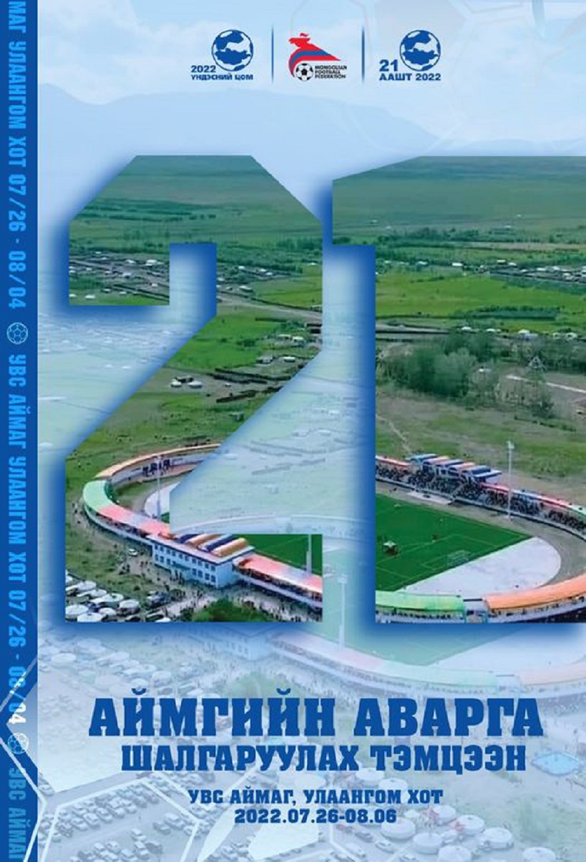МУ-ын ерөнхийлөгчийн ивээл дор МХБХ-ны 21 аймгийн аварга шалгаруулах тэмцээн 202207/26-наас 08/04 хооронд Увс аймгийн Улаангом хотноо зохион байгуулагдана.