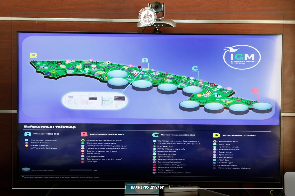 Энэ хүрээнд Олон улсын цэцэрлэгт хүрээлэн буюу IGM төслийн багийн залуучууд төслийн эхний танилцуулгаа дүүргийн удирдлагуудад тавьлаа. Тухайлбал аль хэсэгт орц гарц шийдэх, өвлийн хүлэмж болон зуны хүлэмж, ариун цэврийн асуудал болоод ногоон технологи ашиглан иргэдэ ээлтэй орчныг хэрхэн бүрдүүлэх зэрэг асуудлыг ярьж хэлэлцсэн.