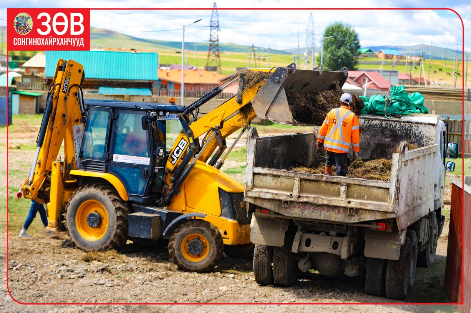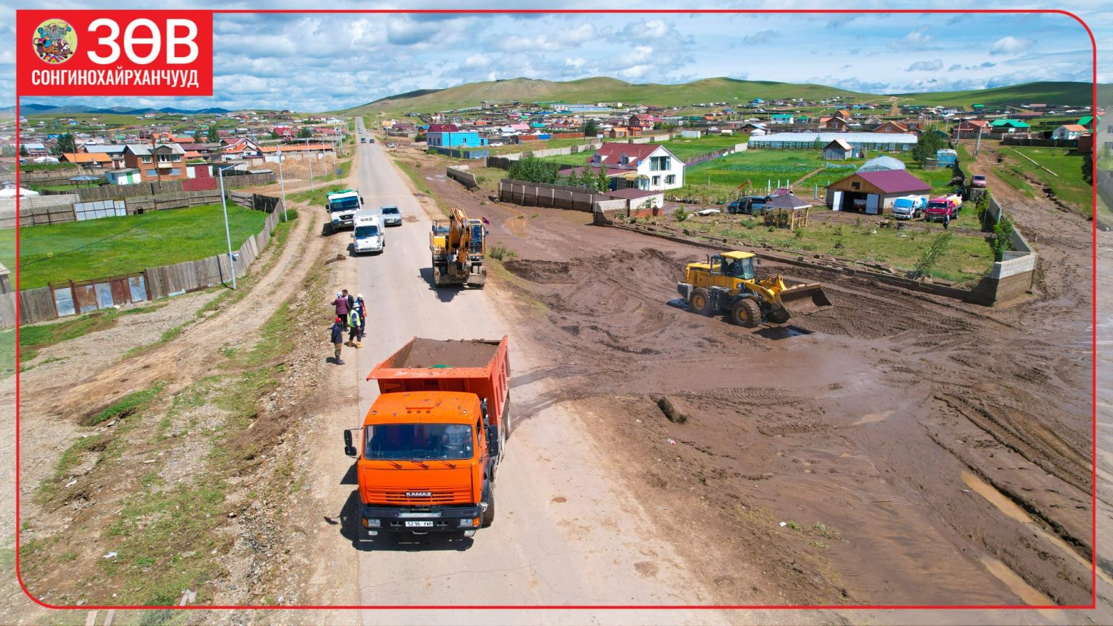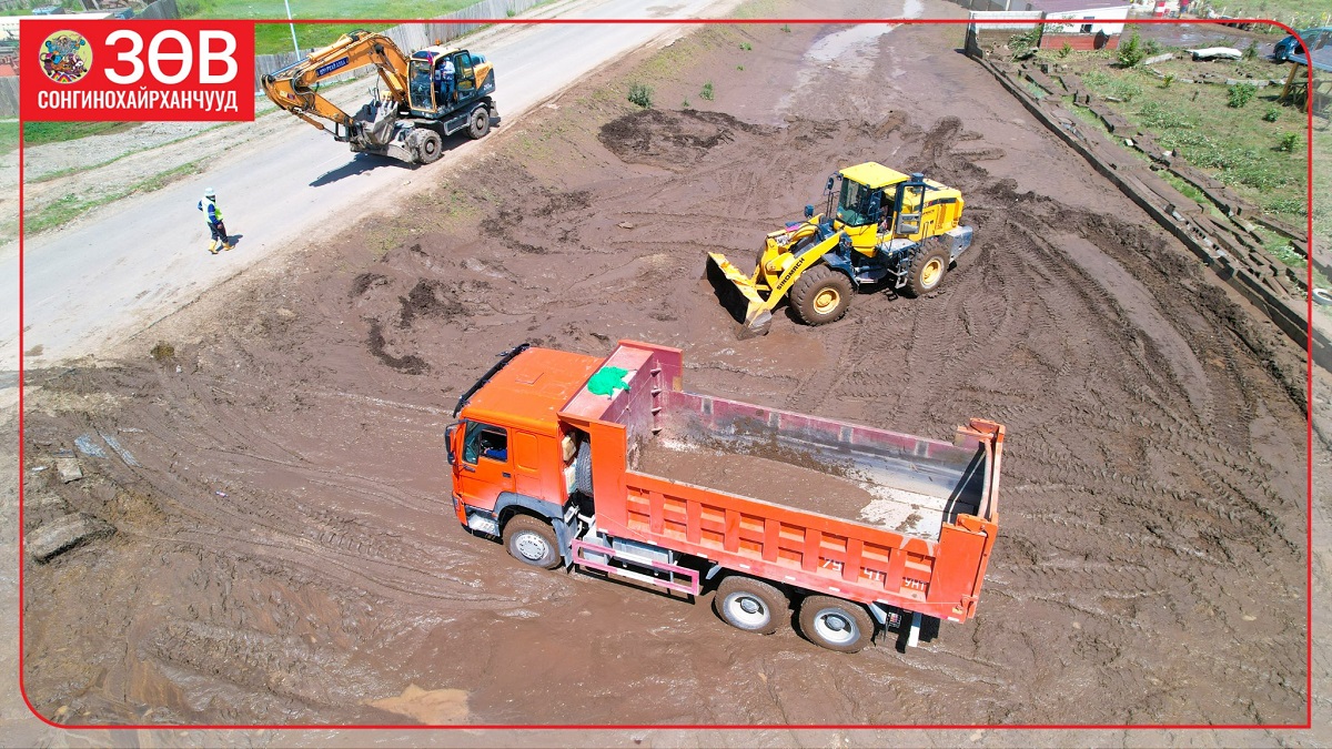 Харин өнөөдөр үер болсон газарт дүүргийн холбогдох удирдлагууд, хорооны албан хаагчид, Геодези, Усны барилга байгууламжийн газар, дүүргийн ТҮК ОНӨААТГ, Улаанбаатар шинэчлэл ХХК-ийн нийт 40 гаруй хүний бүрэлдэхүүнтэй баг ажиллаж байна. Тус ажлын хэсэг нэг ковш, нэг экскаватор, зургаан ачигч машин, нэг универсал трактороор тухайн газарт үүссэн лаг шавар, эвдэрч сүйдсэн хашаа, хайс, өвс, хогийг хусаж цэвэрлэн төвлөрсөн хогийн цэг рүү зөөвөрлөн ажиллаж байна.