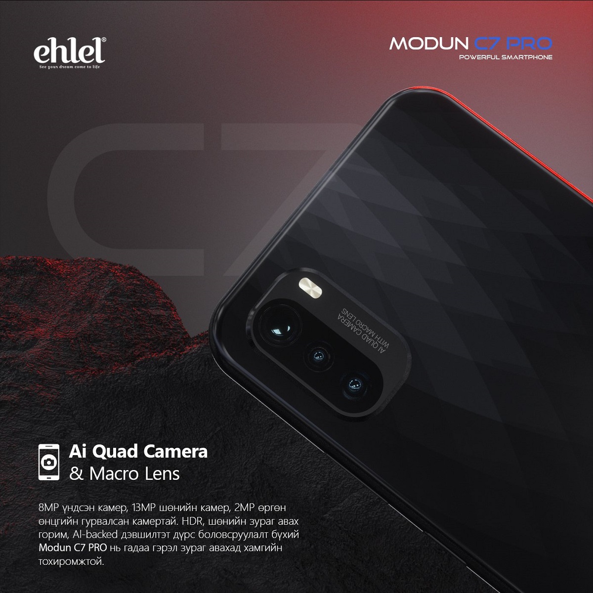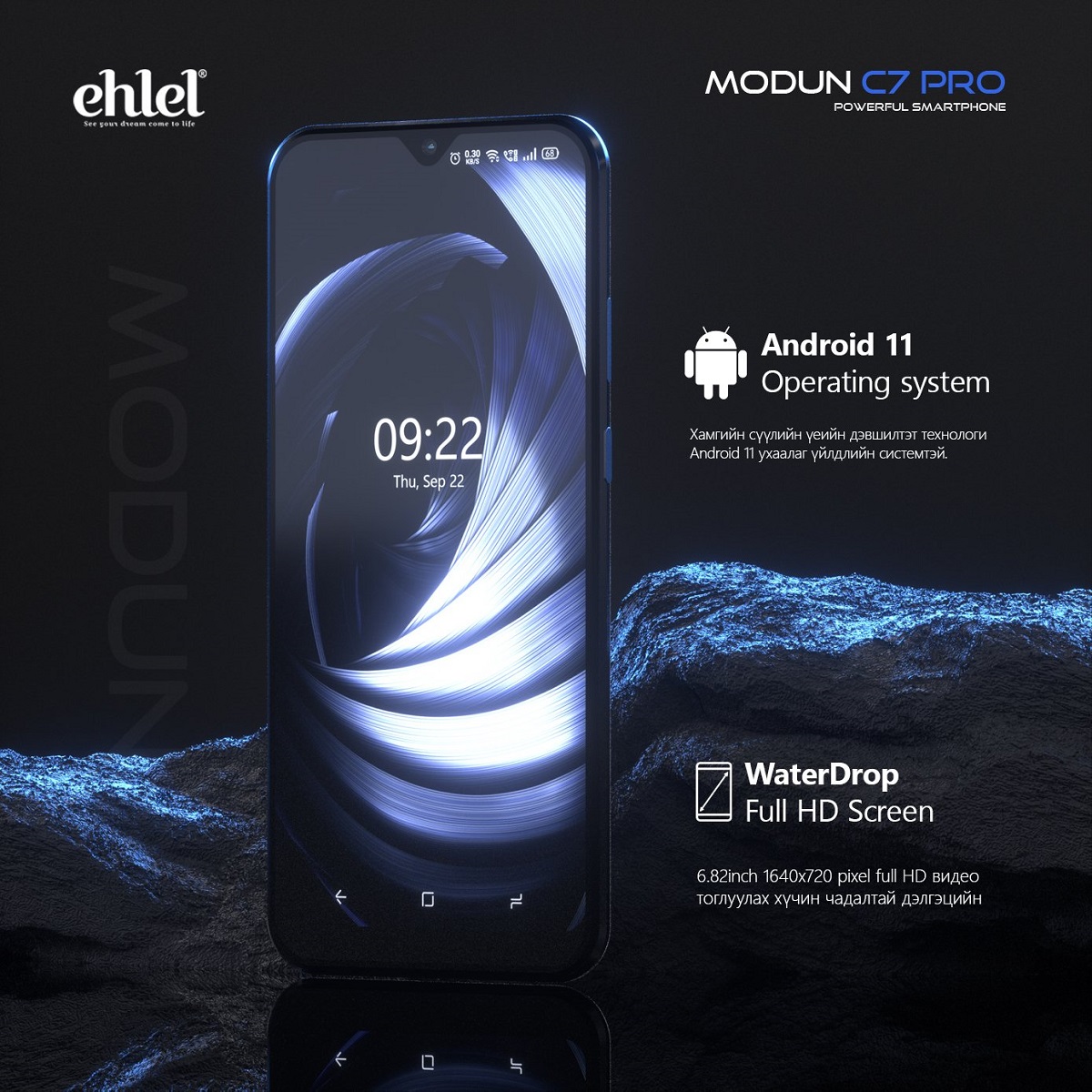 Монгол залуусын оюуны бүтээл болох Modun C7 pro загварын гар утас нь 4GB RAM, 64GB ROM UNISOC CPU, гурвалсан камер, 6.82 инч бүхий том дэлгэц, 185 грамм жинтэй. Түүнчлэн хурууны хээ, царай таних горим, 2 сим, Type-C цэнэглэлтийн оролт нь хэрэглээг илүү хялбаршуулж, дэвшилтэд технологийг өөртөө шинээсэн аж. Мөн өөрийн гэсэн IMEI дугаартай ба GSMA албан ёсоор бүртгүүлсэн үндэсний анхдагч гар утас боллоо.