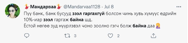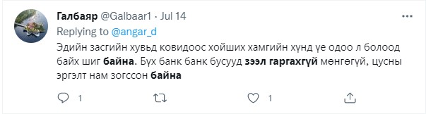 Тодруулснаар бол банкууд барилга, уул уурхай, нүүрс тээврийн чиглэлээр үйл ажиллагаа явуулдаг аж ахуй нэгжид зээл олгохгүй байна. Харин хадгаламж барьцаалсан зээл, цалин, тэтгэвэр болон ипотекийн зээлийг хэвийн олгож байгаа аж.