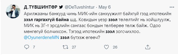 Харин банкууд орон сууцны ипотекийн зээлд хамрагда хүсэлтийг хэвийн авч байгаа аж. Гэхдээ нэлээд цөөн тоогоор зээл олгож байгаа гэх гомдлыг иргэд хэлж байна. Угтаа бол орон сууцны ипотекийн зээлийн эргэн төлөлтийг хөл хорионы үед түр хойшлуулсан. Ингэхдээ Монголын ипотекийн корпорацийн байгуулсан эрсдэлийн сангаас эргэн төлөлтийг нөхөж байсан билээ. Тэгвэл одоо эрсдэлийн сангийн хөрөнгө мөнгөний хэмжээнээс хамаарч ийнхүү цөөн тооны ипотекийн зээл олгож байгаа гэх таамаг иргэдийн дунд байна.