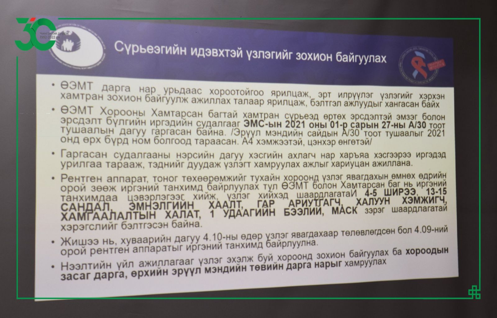 Иймд ЧД-ийн Засаг даргын Тамгын газар, Эрүүл мэндийн төв, Монголын Өрхийн анагаах ухааны мэргэжилтнүүдийн холбоотой хамтран хоёр дахь жилдээ зохион байгуулж буй сүрьеэг эрт илрүүлэх явуулын үзлэгт эрсдэлт бүлгийн 5700 орчим хүнийг хамруулахаар төлөвлөн ажиллаж байна.
