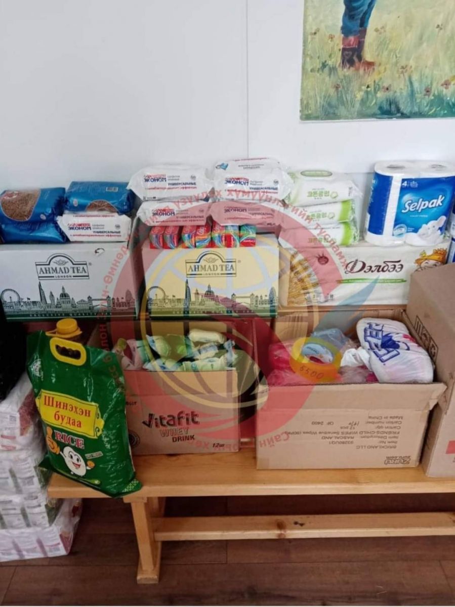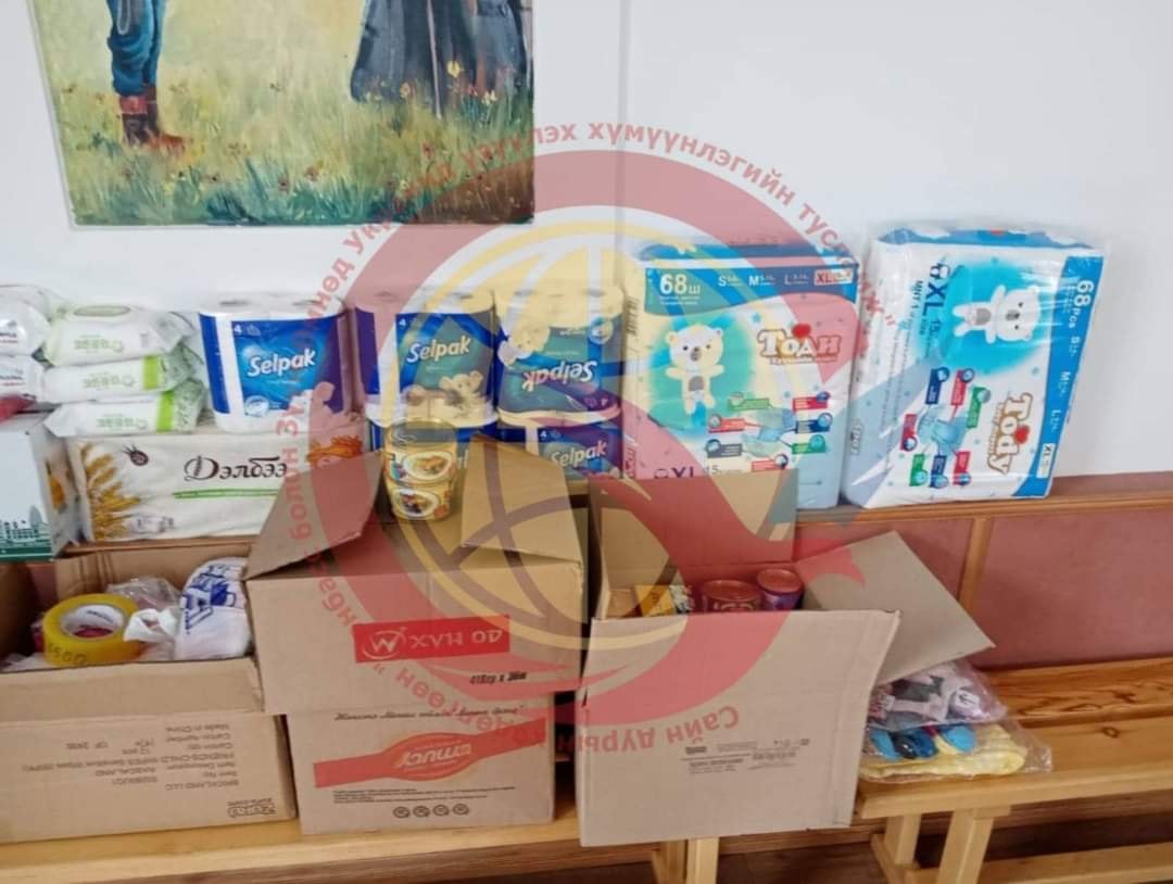 Тусламжийн ачаанд “Монголд үйлдвэрлэв” гэсэн шошготой гурил, цай, үр тариа, гоймон, лаазалсан хоол, тэмээн болон хонины ноосон оймс болон элсэн чихэр, хувийн ариун цэврийн хэрэгсэл, хүүхдийн живх, нүүр гарын алчуур зэргийг худалдан авч, явуулж байгаа аж.