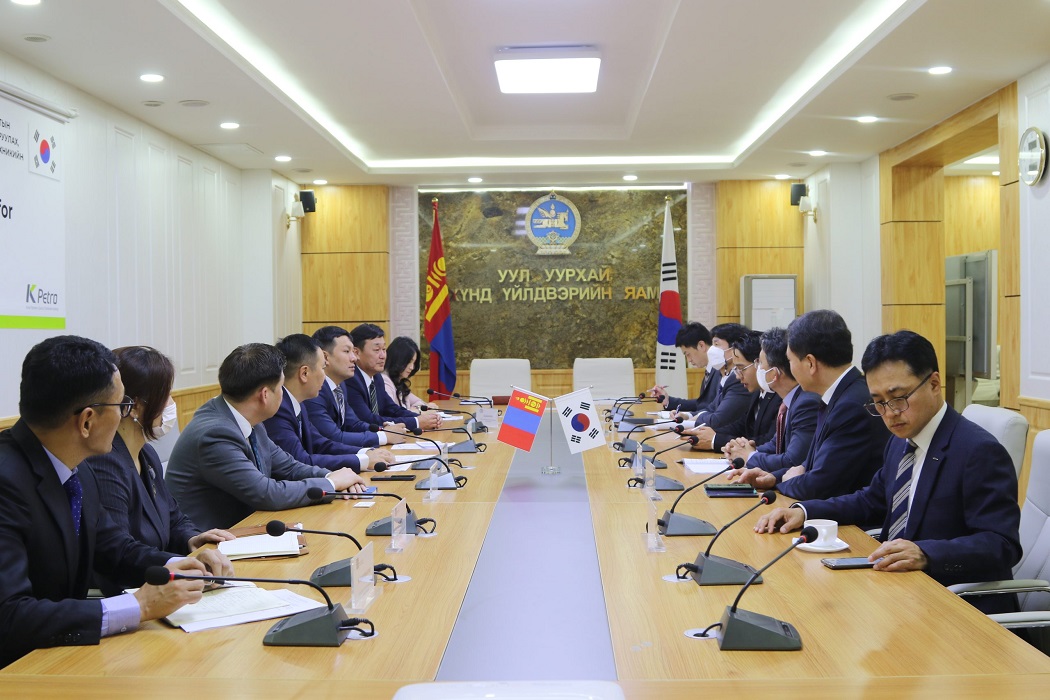 Монгол Улсын Уул уурхай, хүнд үйлдвэрийн яам болон БНСУ-ын Газрын тосны чанар, хангамжийн газар /К-Петро/ хоорондын “Техникийн хамтын ажиллагааны тухай харилцан ойлголцлын санамж бичиг”-т гарын үсэг зурах ёслолын ажиллагаа өчигдөр /2022.08.10/ боллоо.