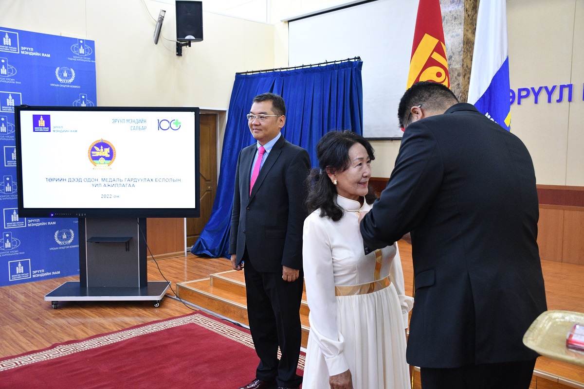 Эрүүл мэндийн ажилтны нийгмийн хамгааллын дэмжих сар “Эрүүл мэндийн салбарын ажилтны өдөр”-ийг тохиолдуулан Эрүүл мэндийн сайд салбартаа үр бүтээл, амжилттай ажилалсан эрүүл мэндийн салбарын ажилтнуудын төлөөлөлд төрийн дээд одон медалиар шагнав.