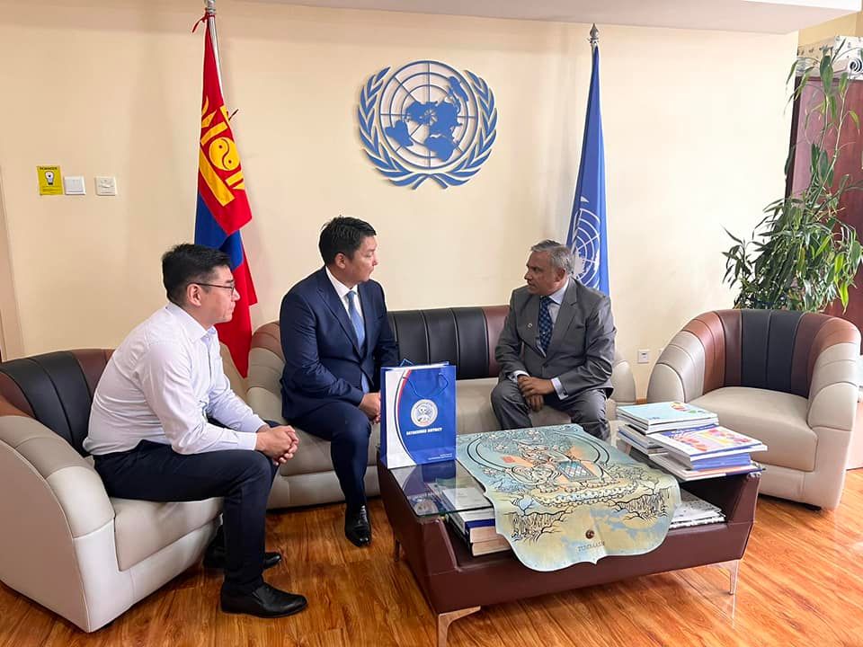 Баянзүрх дүүргийн Засаг дарга Н.Баярмөнх, холбогдох удирдлагууд Монгол улс дахь НҮБ-ын суурин зохицуулагч Тапан Мишратай уулзаж дүүргийн 23,28 дугаар хорооны нутаг дэвсгэрт хийгдэхээр төлөвлөгдөж буй International Garden of Mongolia буюу Олон улсын Эко цэцэрлэгт хүрээлэнгийн төслийн талаар харилцан санал солилцлоо.