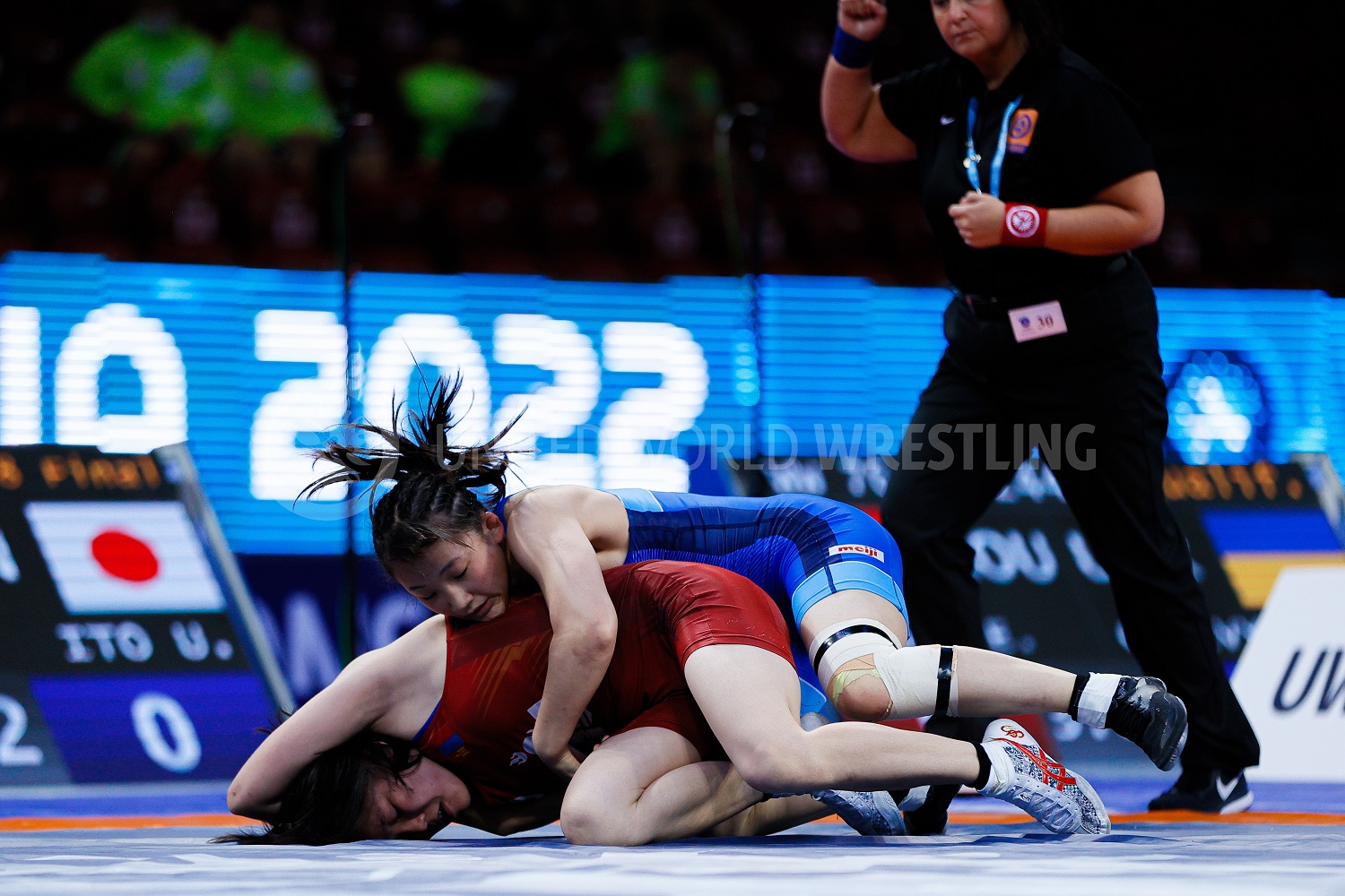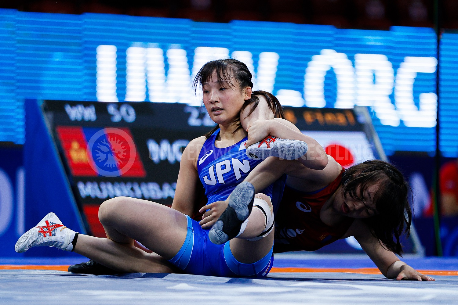 Хамгийн хөнгөн буюу 50 кг-ын жинд өсвөр, залуучуудын ДАШТ-ий хүрэл медальт, залуучуудын Азийн аварга М.Мөнхгэрэл барилдлаа. Тэрээр эхний тойрогт Японы Үми Итотой таарч, 0-10 ялагдлаа.