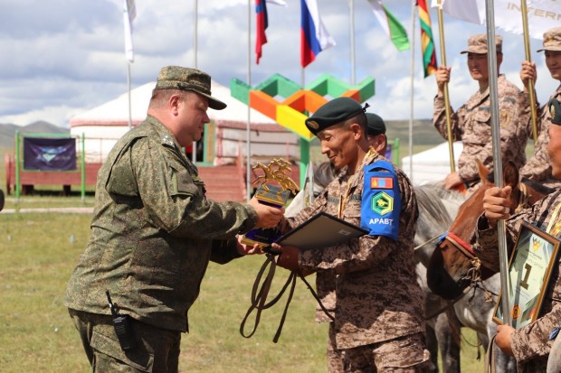 ЗХЖШ-ын дарга, дэслэгч генерал Д.Ганзориг морьтон дайчдад баяр хүргэж хэлсэн үгэндээ “Оросын Холбооны Улсын Батлан хамгаалах яамнаас санаачлан зохион байгуулдаг дэлхийн улс орнуудын эв нэгдлийн гүүр болж, цэрэг, армиудыг энхийн зорилго дор нэгтгэж, цэргийн хамтын ажиллагаа, харилцан итгэлцлийг бэхжүүлэхэд үнэтэй хувь нэмэр оруулж байгаа “Олон улсын цэргийн наадам”-ын онцгой төрөл болсон Олон улсын “Аравт” морин цэргийн уралдаан 2 дахь удаагаа нарлаг монгол оронд минь Та бидний хамтын хүчин чармайлтын үр дүнд амжилттай сайхан явагдаж дууслаа.