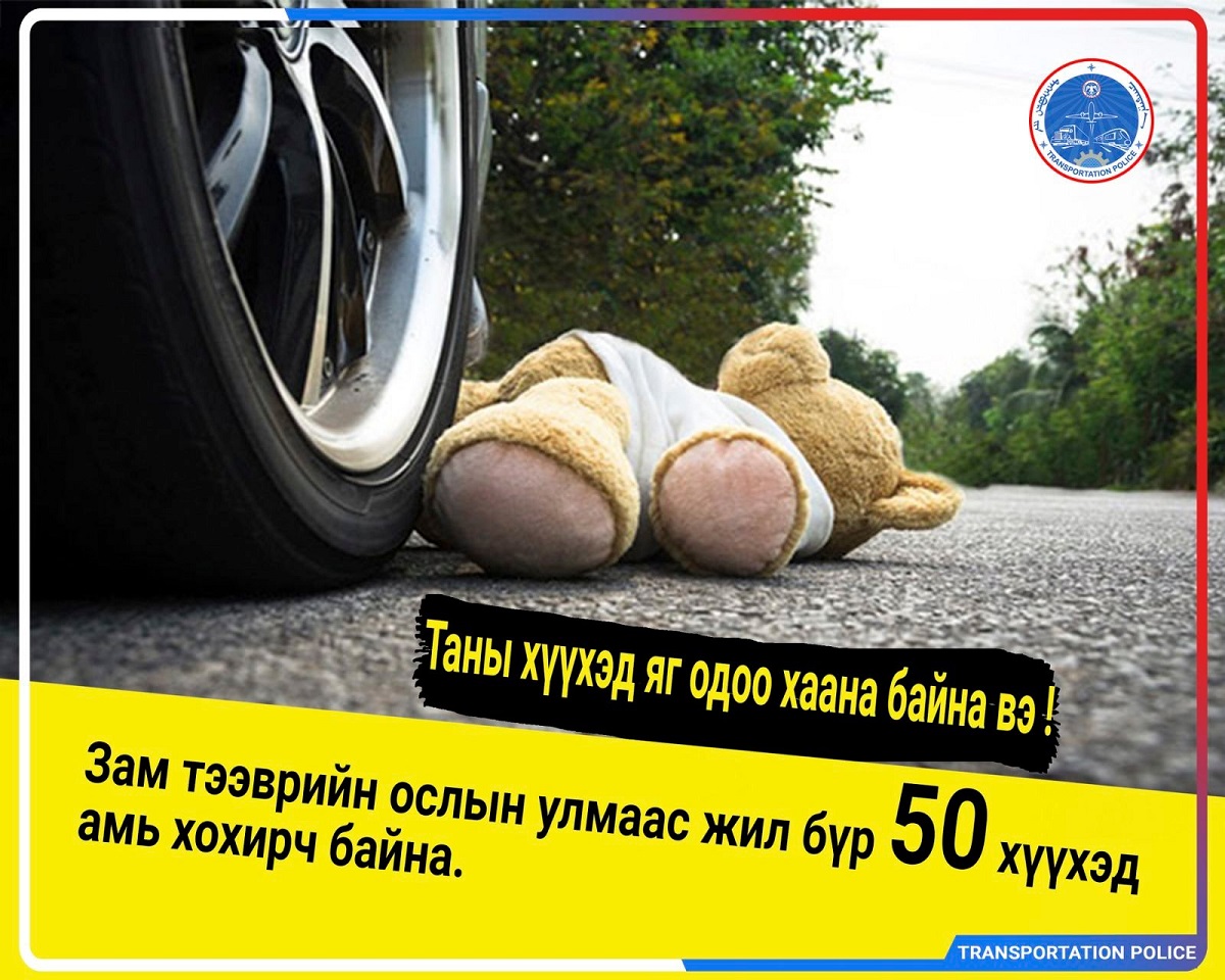 Мөн зам тээврийн осолд өртөж байгаа хүүхдүүдийн 50 орчим хувь нь эцэг эх, асран хамгаалагчтайгаа явж байхдаа осолд орж байгаа учир автомашиндаа аюулгүй тээвэрлэх, замын хөдөлгөөнд оролцохдоо зөв үлгэр дууриал үзүүлээч ээ гэж уриалах хэрэгтэй гэж Тээврийн цагдаагийн албаныхан анхааруулж байна.