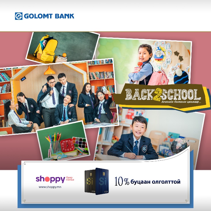 Харин хараахан бэлтгэлээ бүрэн хийж амжаагүй харилцагчдадаа зориулан нэгэн таатай мэдээг дуулгах гэж байна. Хэрвээ та манай Si картын харилцагч бол Shoppy.mn-ийн “Back to school” хэсгээс зөвхөн хичээлийн хэрэглэлтэй холбоотой худалдан авалт хийж 10%-ийн буцаан олголт авах боломжтой боллоо. Та тус вэбсайтын “Back to school” хэсгээс цэцэрлэг, сургуульд хэрэгтэй бүхий л барааг онлайнаар захиалан аваарай.