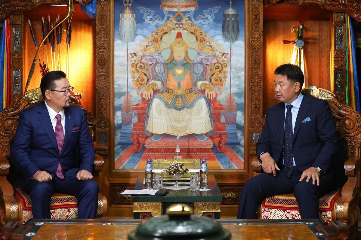 Монгол Улсын Ерөнхийлөгч У.Хүрэлсүхэд УИХ-ын дарга Г.Занданшатар Улсын Их Хурлаас баталсан Монгол Улсын Үндсэн хуульд оруулсан өөрчлөлтийг Монгол Улсын Үндсэн хуульд нэмэлт, өөрчлөлт оруулах журмын тухай хуулийн 18 дугаар зүйлийн 11 хэсэгт заасан журмын дагуу биечлэн хүргэж, танилцууллаа.