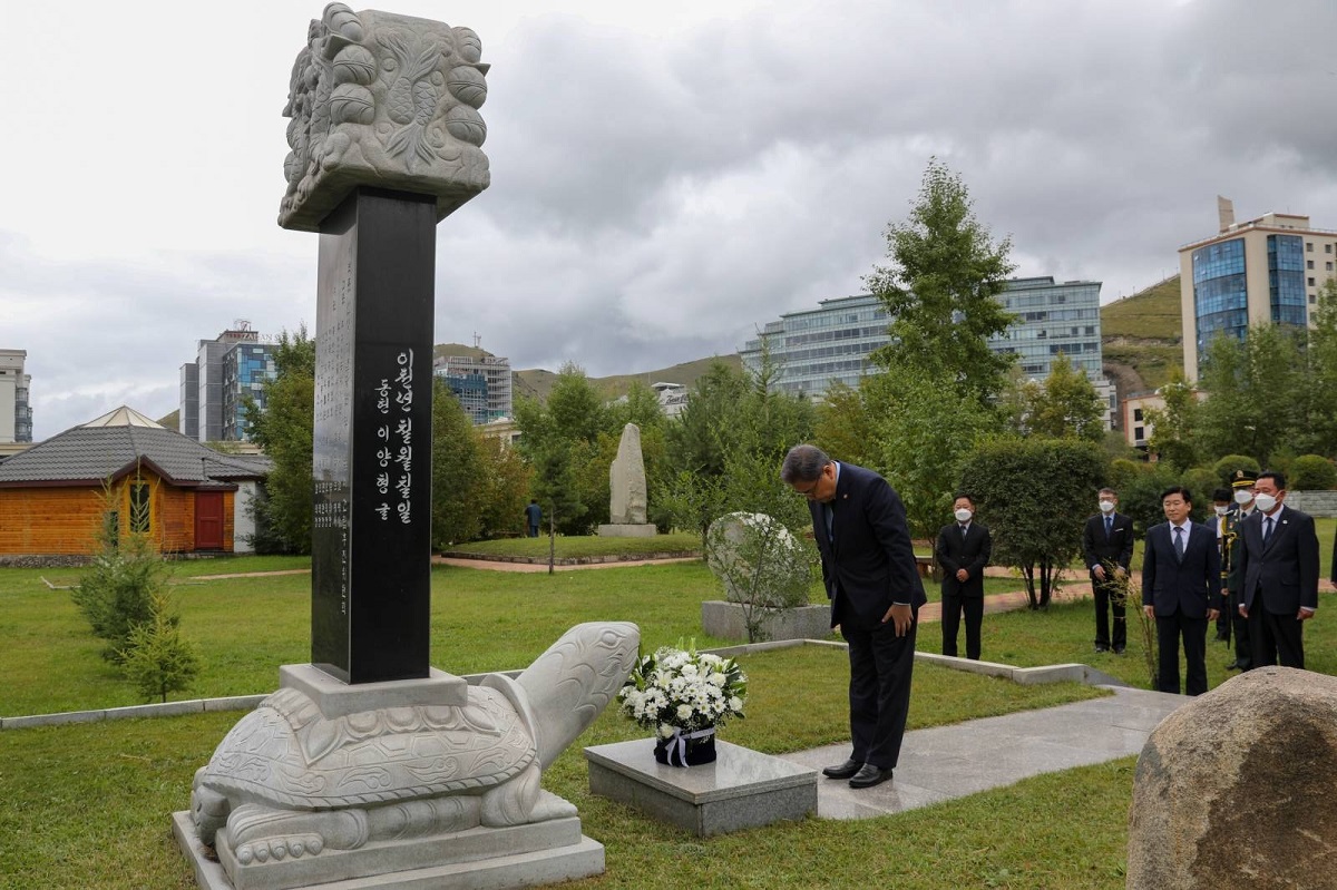 -Монгол Улсад албан ёсны айлчлал хийж буй Бүгд Найрамдах Солонгос Улсын Гадаад хэргийн сайд Пак Жин “Чингис хаан” олон улсын нисэх онгоцны буудалд хүрэлцэн ирсэнийхээ дараа Улаанбаатар хотын Зайсан дахь “Ли Тэ Жүн эмчийн дурсгалын цэцэрлэгт хүрээлэн”- д очиж, хүндэтгэл үзүүлэв.