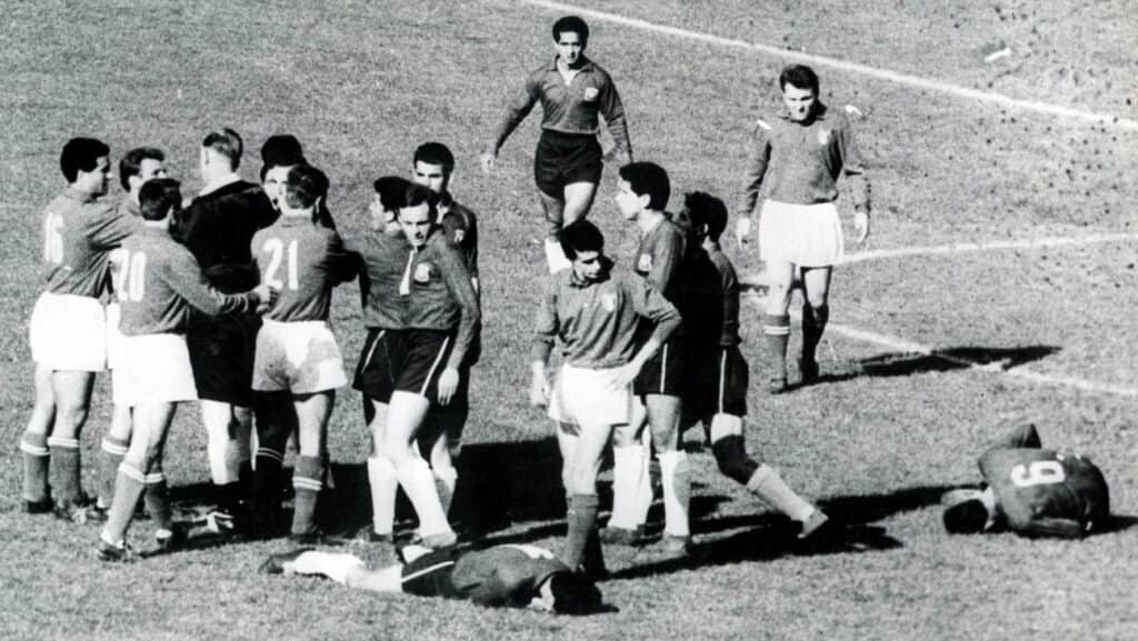 1962 оны зургаадугаар сарын хоёронд Сантьяго хотын "Estadio Nacional" цэнгэлдэхэд ДАШТ-ий "В" хэсгийн хоёр дахь тойргийн тоглолт талбайн эзэн Чили , 1934,1938 оны дэлхийн аварга Италийн шигшээ багуудын хооронд болсон бөгөөд цэнгэлдэхэд цөс нь хөөрч, хилэн нь бадарсан 66 000 үзэгч хуран цугларч, түүхэнд үлдсэн тоглолтын амьд гэрч болжээ. Тоглолт эхлэхийн өмнө Италийн тоглогчид баглаа цэцэгтэй гарч ирэн үзэгчид, бүсгүйчүүдэд өгч , таагүй байдлыг намжаахыг хүссэн ч ихэнх баглаа цэцэг эргээд шидэгдэж байлаа.