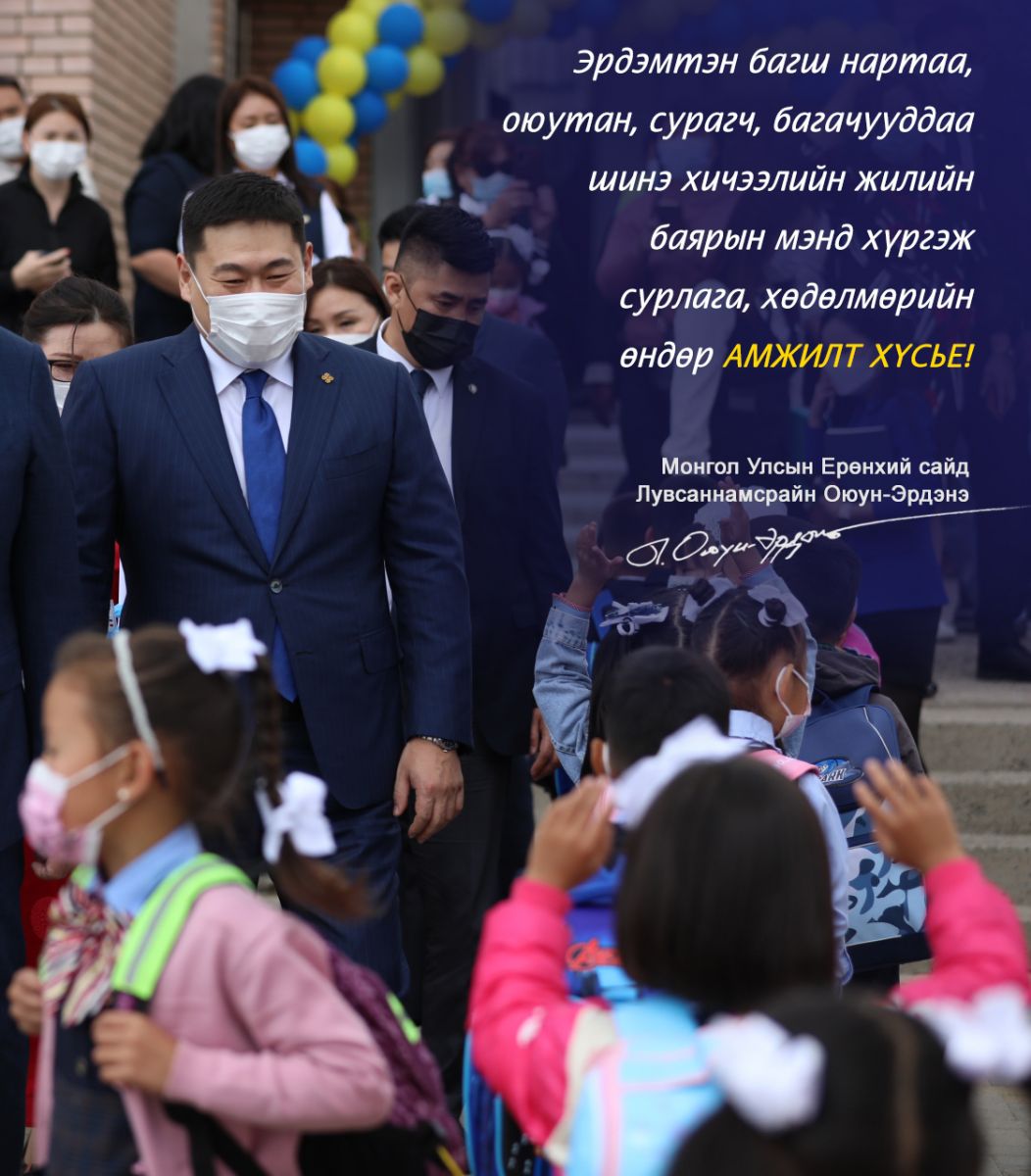 Монгол Улсын Ерөнхий сайд Л.Оюун-Эрдэнэ шинэ хичээлийн жилийн нээлтийг Баянзүрх дүүргийн төрийн бус өмчийн “Нарны үрс” цэцэрлэгийн үйл ажиллагаатай танилцаж эхлүүллээ. Тэрбээр эрдэмтэн мэргэн багш нартаа, эрдмийн их аянд шамдаж буй оюутан, сурагч, багачууддаа 2022-2023 оны шинэ хичээлийн жилийн баярын мэнд хүргэж сурлага, хөдөлмөрийн өндрөөс өндөр амжилт хүсэв.
