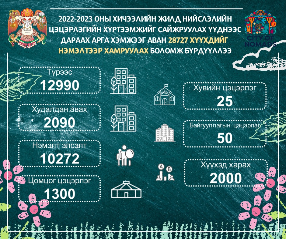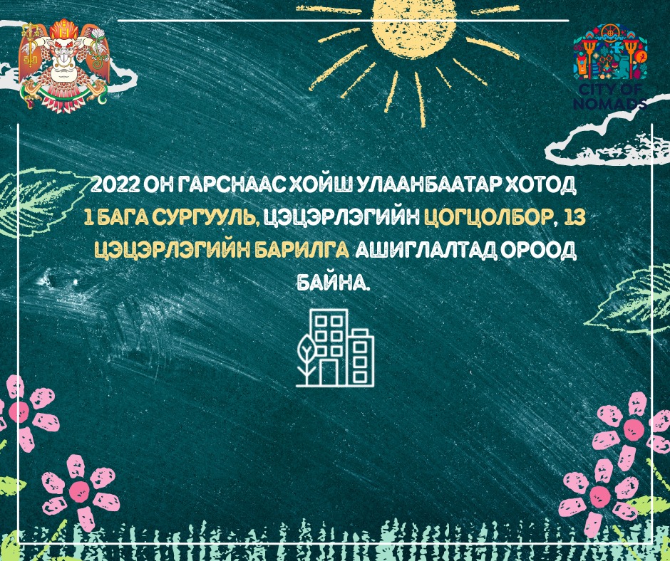 2022-2023 хичээлийн шинэ жилийг тохиолдуулан нийслэл дэх сургуулийн өмнөх боловсролын байгууллагууд /цэцэрлэг/-ын статистик мэдээллийг хүргэж байна.