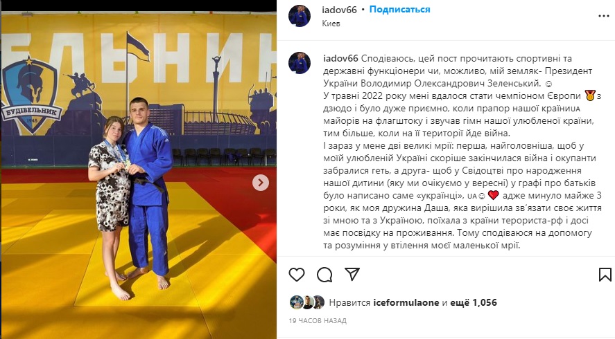 Европын аварга, Украины жүдоч Богдан Ядов олон хамгийн гол хоёр мөрөөдлөө олон нийтийн сүлжээнд бичжээ.