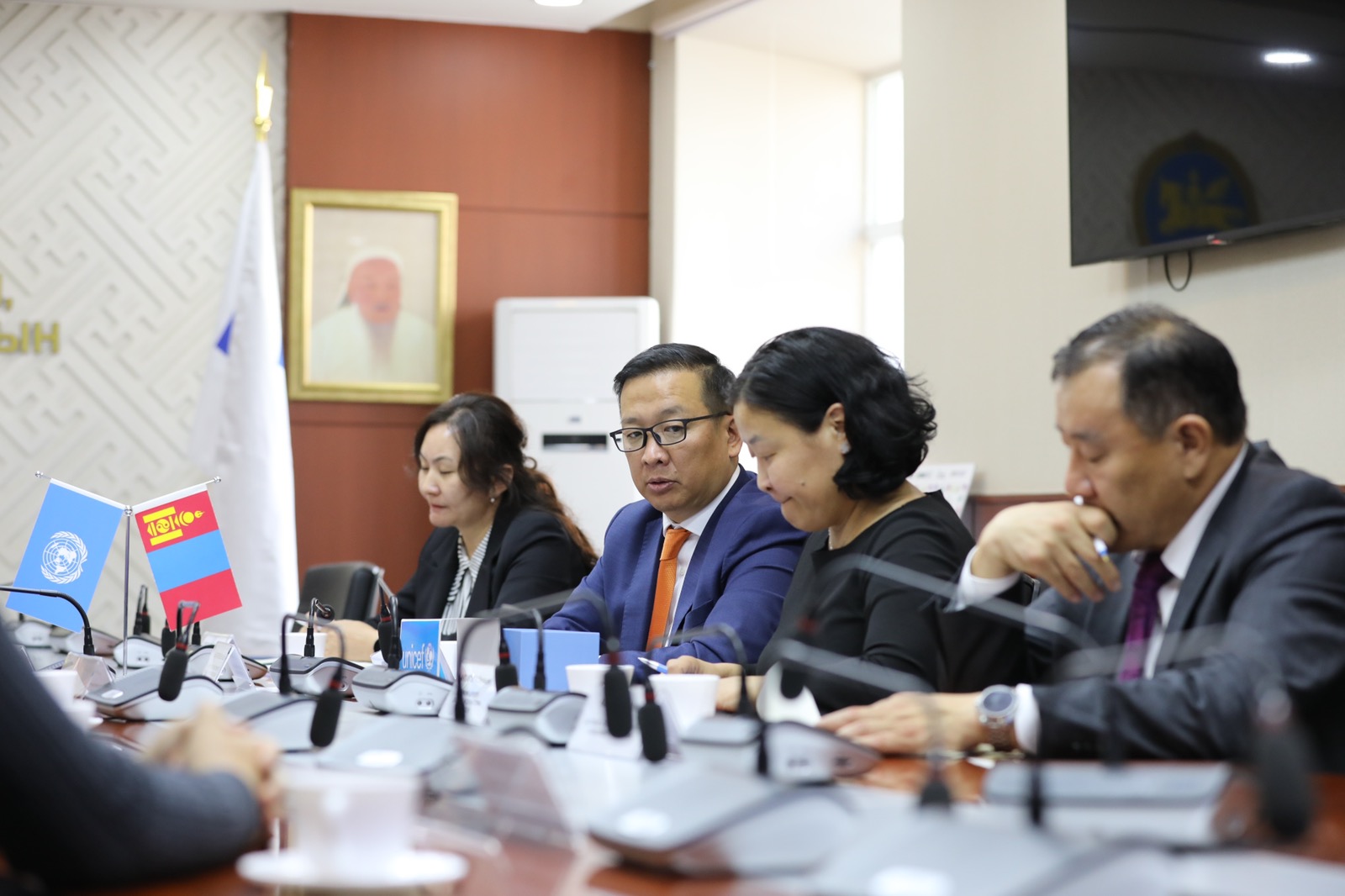 Байгаль орчин, аялал жуулчлалын сайд Б.Бат-Эрдэнэ НҮБ-ын хүүхдийн сангийн Монгол дахь суурин төлөөлөгч Эваристе Коуасси-Комла тэргүүтэй албаны төлөөллийг хүлээн авч уулзлаа