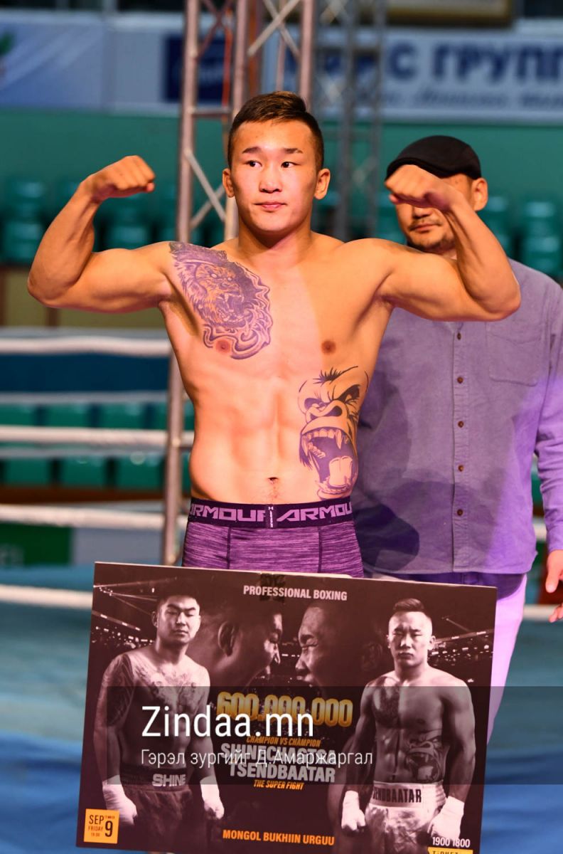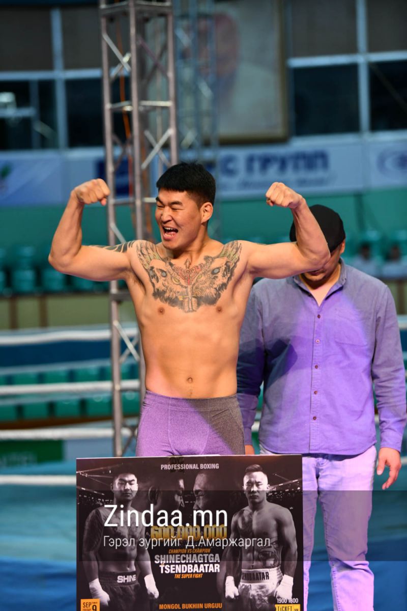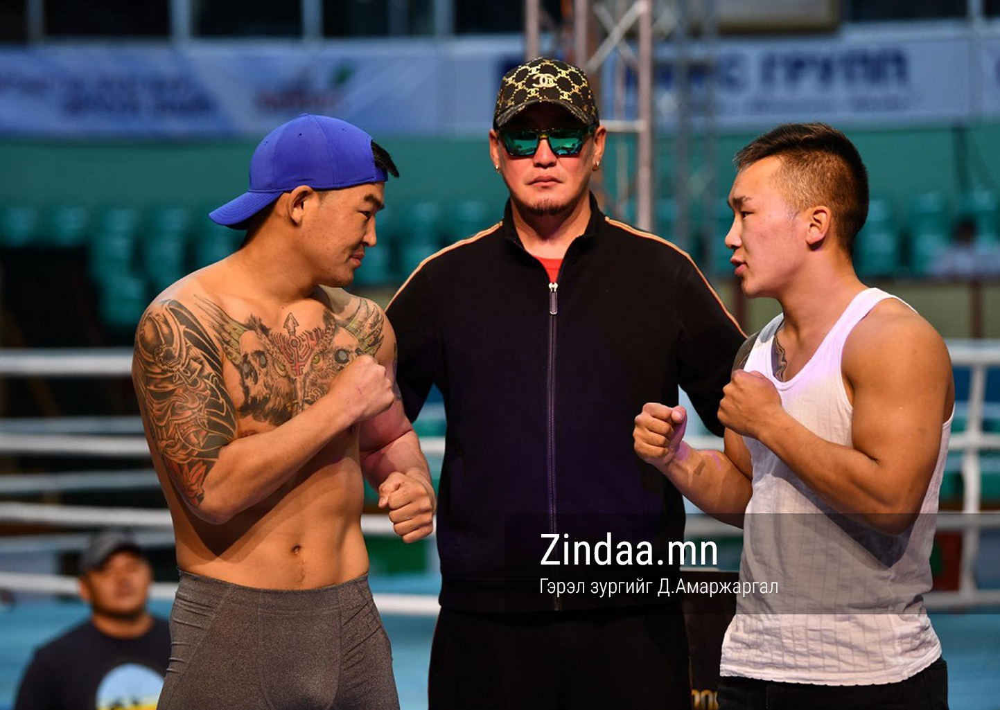 Маргааш буюу есдүгээр сарын 9-нд 600 сая төгрөгийн бооцоотой тулаан хийх гэж буй Монгол Улсын Гавьяат тамирчин, сонирхогчдын боксын ДАШТ-ий хүрэл медальт, мэргэжлийн бокст саяхан шилжсэн Э.Цэндбаатар, One Championship холбооны холимог тулаанч Э.Шинэчагтага нар жингийн үзлэгтээ орлоо.