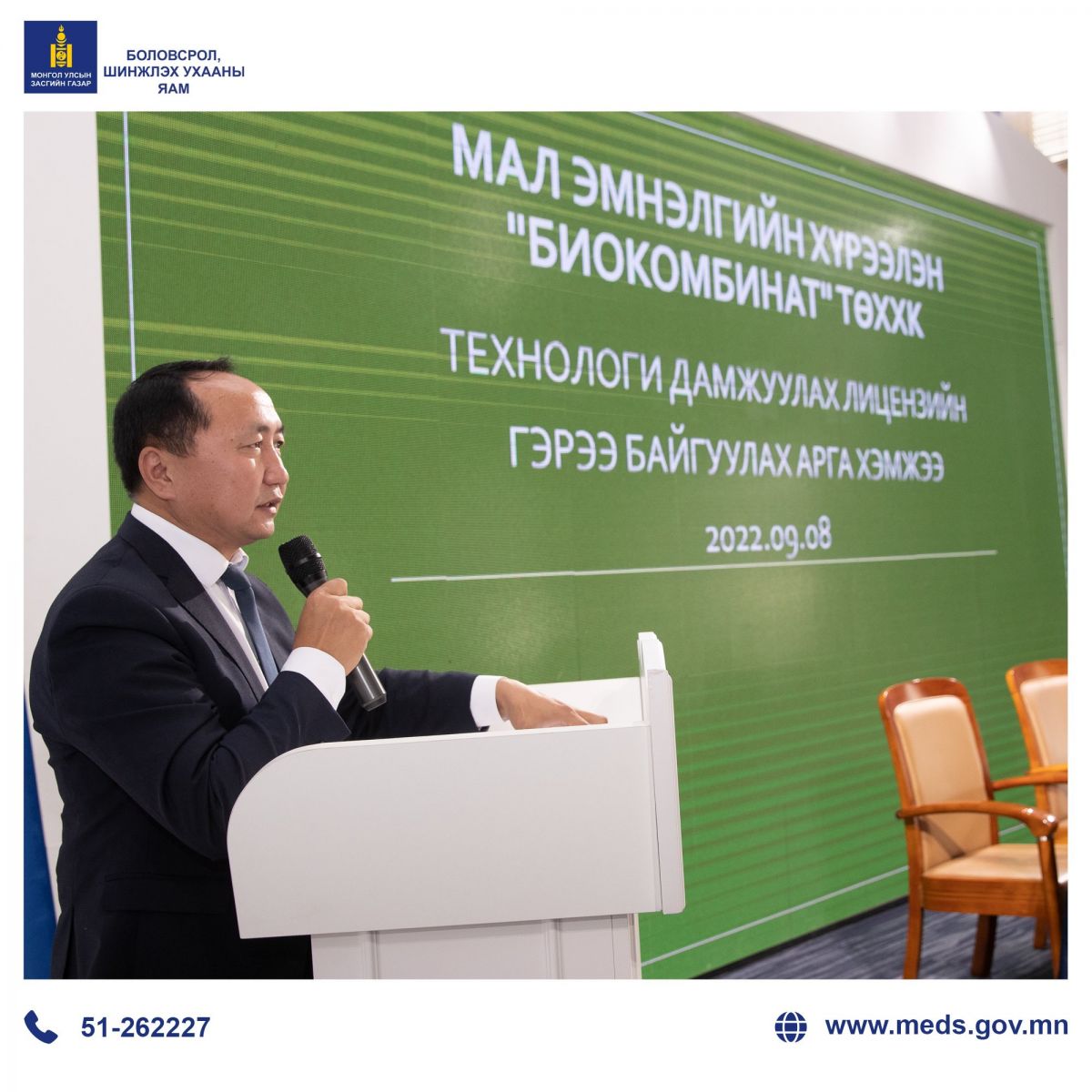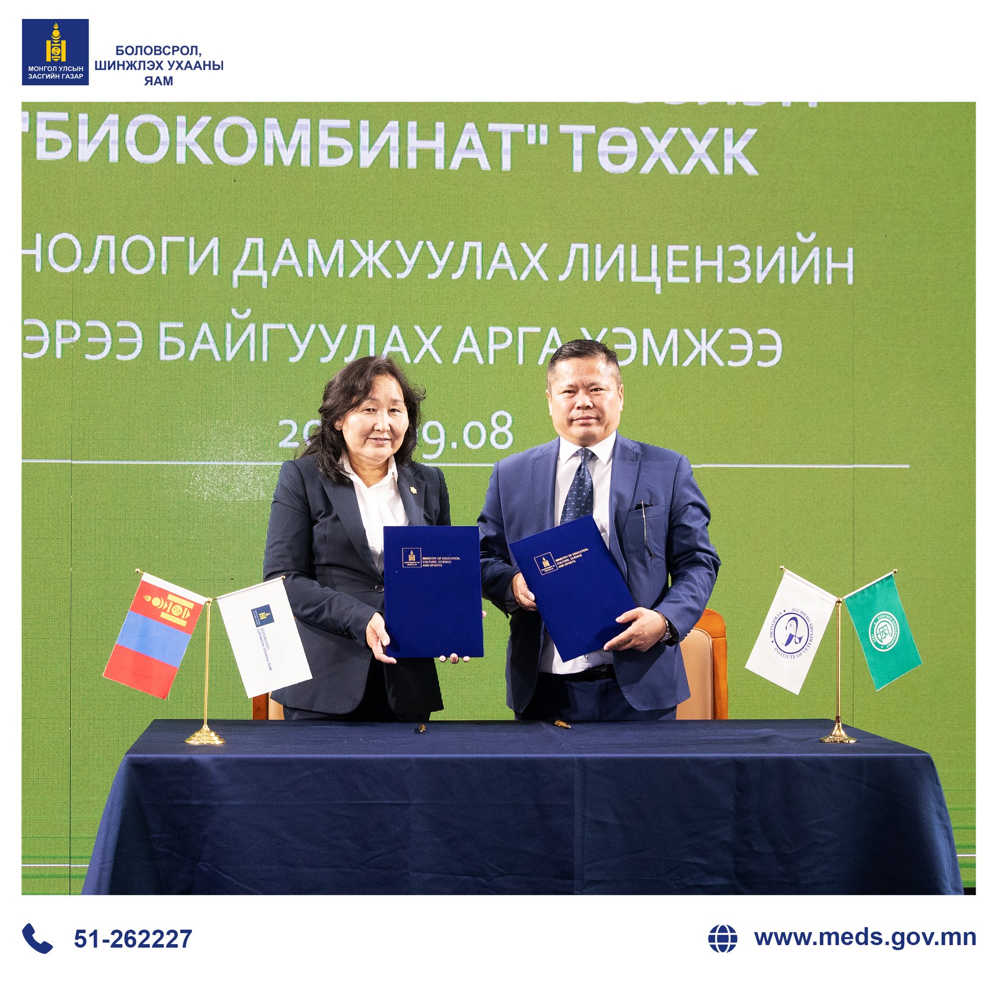 Хөдөө аж ахуйн их сургуулийн Мал эмнэлгийн хүрээлэн, “Биокомбинат” ТӨХХК-ийн хооронд “Технологи дамжуулах лицензийн гэрээ” байгуулах үйл ажиллагаа өнөөдөр / 2022.09.08 / боллоо.