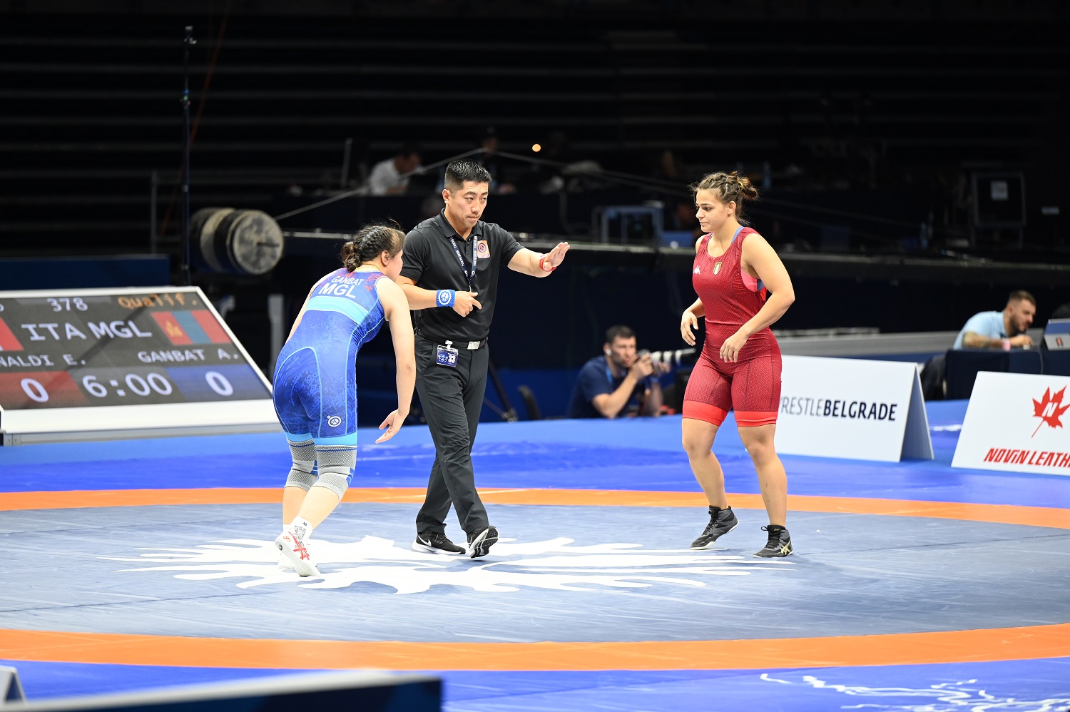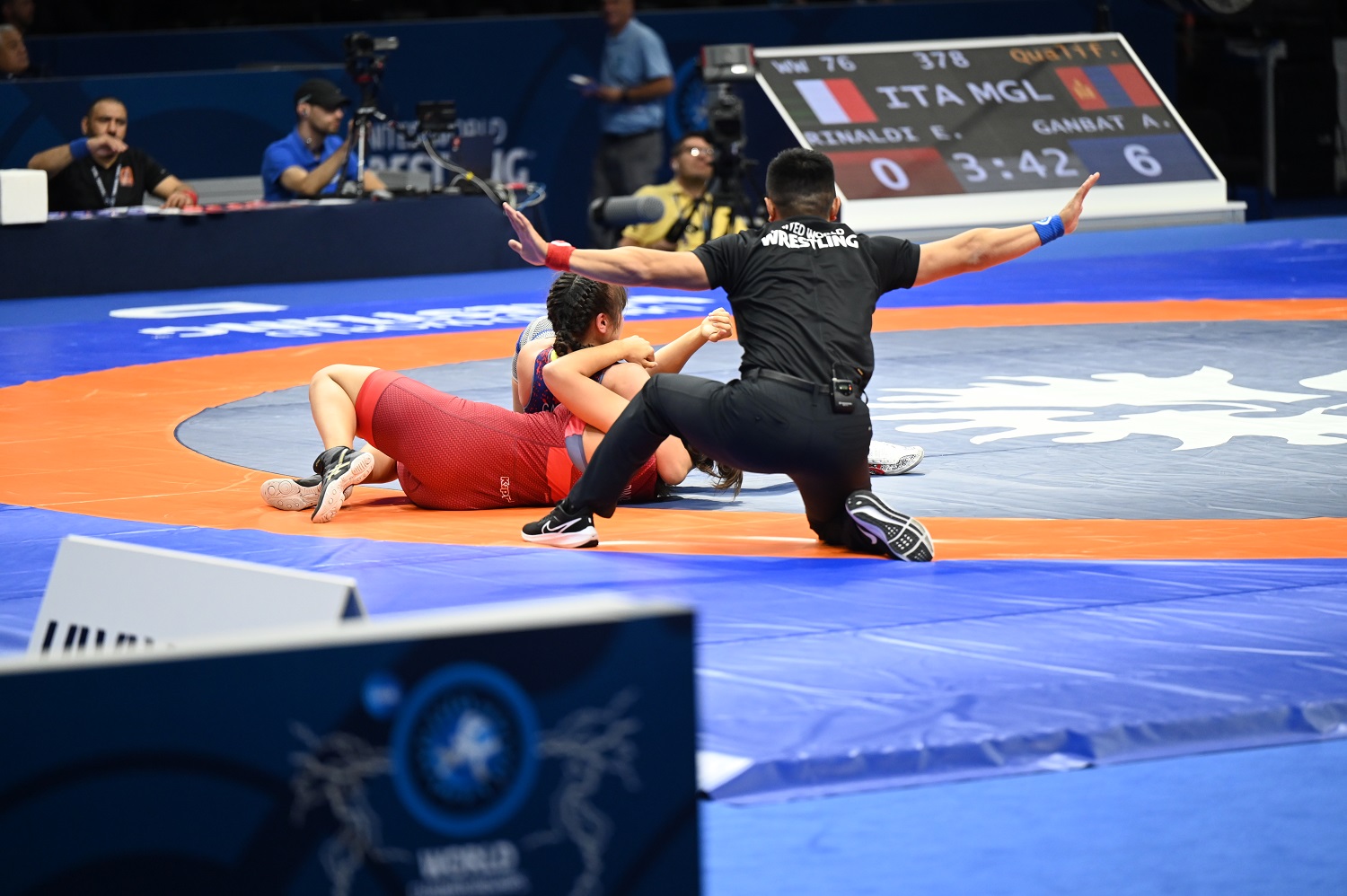 Эмэгтэй 76 кг-д ОУХМ Г.Ариунжаргал тэгшитгэлд 2022 оны Европын аваргын хүрэл медальт Италийн Энрика Риналдитай барилдаж, цэвэр яллаа. Одоо түүнийг ДАШТ-ий мөнгө, хос хүрэл медальт, Европын аварга Финландын Эпп Маетай хийх барилдаан хүлээж байна.