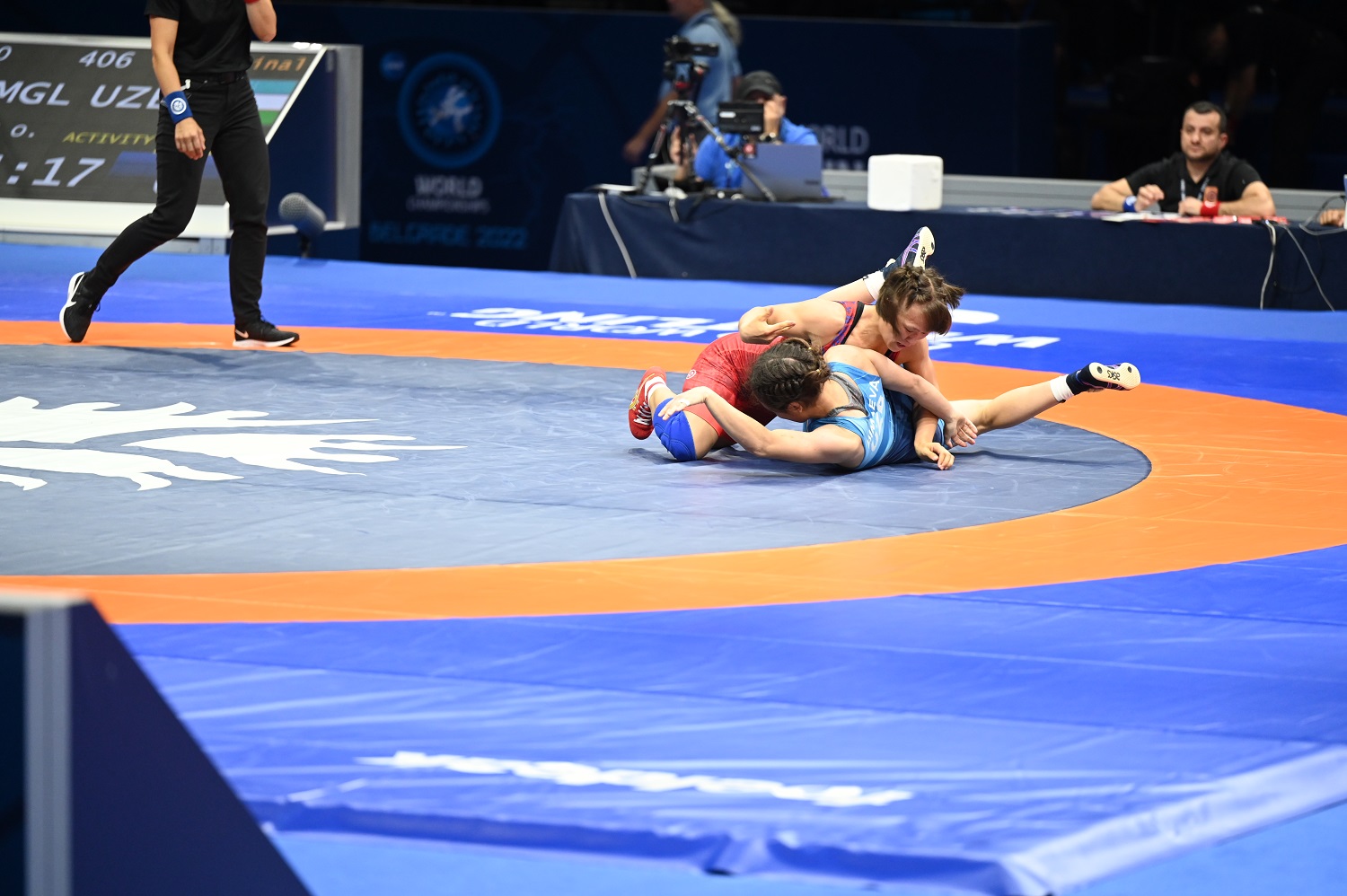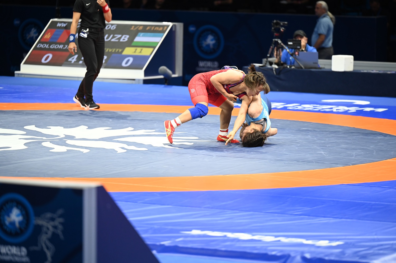 Эмэгтэй 50 кг-д Ослогийн ДАШТ-ий хүрэл медальт ОУХМ Д.Отгонжаргал 1/8 шигшээд Азийн АШТ-ий хоёр медальтай Узбекистаны Жасмина Иммаеватай барилдаж, төвөггүй цэвэр яллаа.