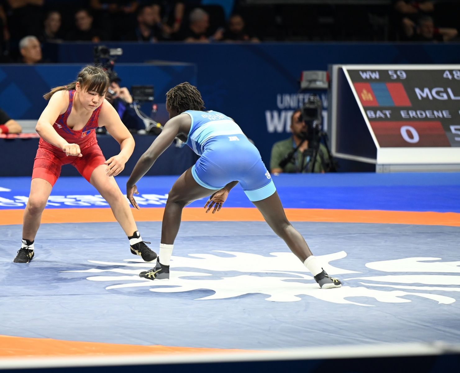 Эмэгтэй 59 кг-д 14 бөх барилдаж байна. Бат-Эрдэнийн Эрдэнэсувд эхлээд Казахстаны Диана Каюмоваг 11:4 ялсан. Дараагийн тойрогт Норвегийн Grace Jacob BULLEN-д 0:12 оноогоор цэвэр ялагдлаа. Норвеги бүсгүй эхний тойрогт АНУ-ын Abigail Nette-г хөлд нь орсоор 13:2 оноогоор цэвэр ялсан юм. Энэ удаад ч мөн эхний минут 30 секундэд гурван удаа хөл амжилттай авч, манай бөхийг оноогоор цэвэр яллаа.