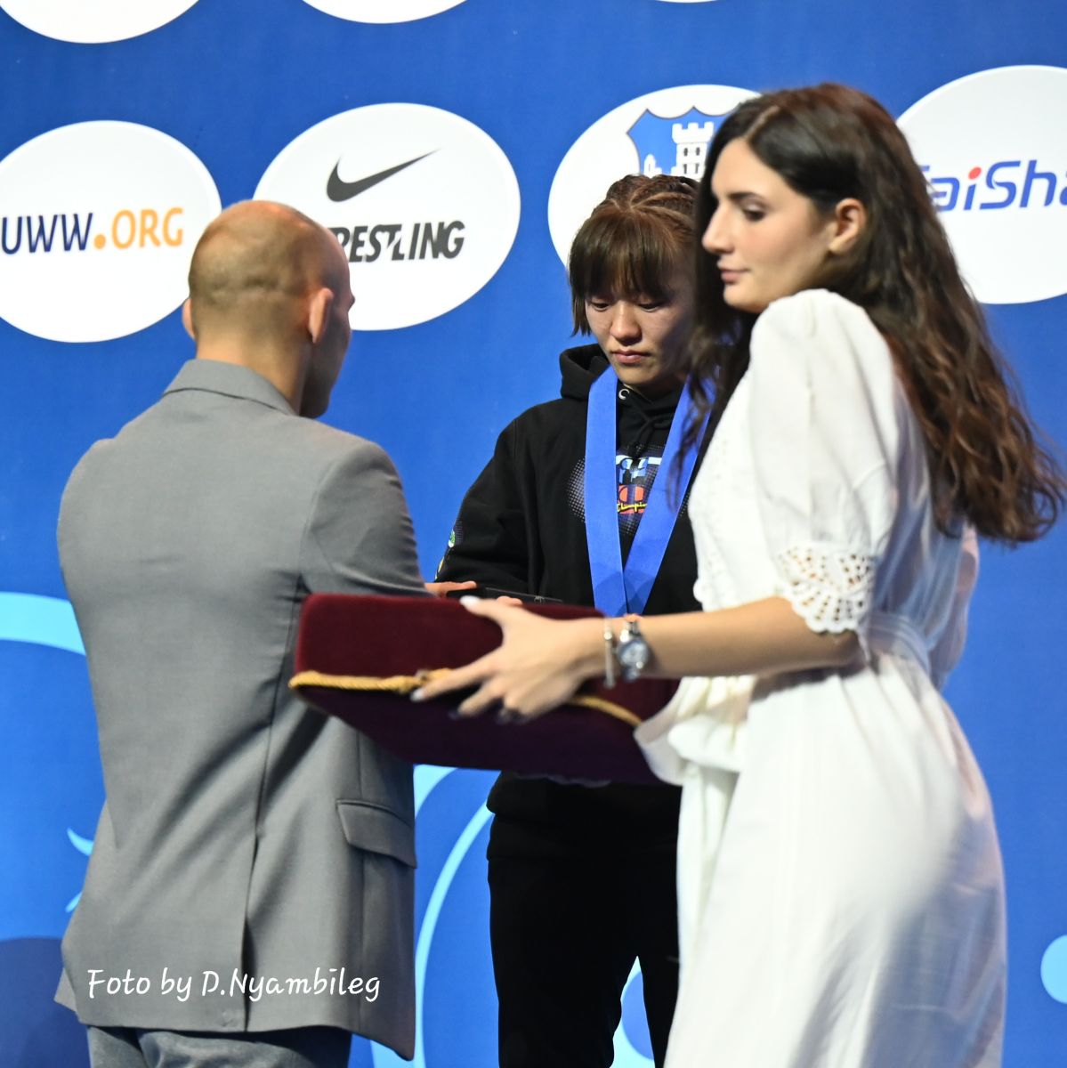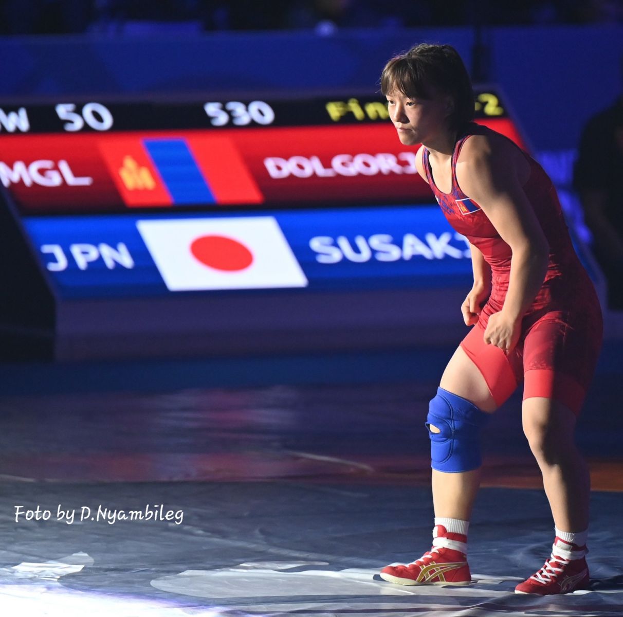 Финалын өрсөлдөгч нь 2020 Токио олимпын аварга, 2017, 2018 оны дэлхийн аварга, 2017 оны Азийн аварга Японы Юи Сүсаки байлаа. Хоёр бөх өмнө нь хоорондоо таарч барилдаж байгаагүй. СҮсаки энэ ДАШТ-д нэг ч оноо алалгүй, бүх өрсөлдөгчөө цэвэр ялсан. Барилдаан эхлээд удсангүй, Сүсаки шахаж эргүүлэн 4 оноо авч, дамжин, хүнд байдалд оруулж, цэвэр яллаа.