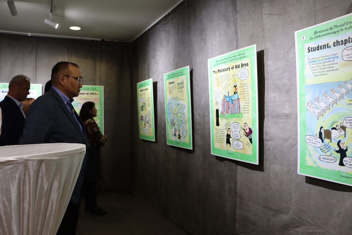 БНЧУ-аас Монгол Улсад суугаа Онц бөгөөд Бүрэн эрхт Элчин сайд Ян Вытопил “Орчин цагийн генетикийн шинжлэх ухааныг үндэслэгч Грегор Менделийн мэндэлсний 200 ойг тохиолдуулан энэхүү үйл ажиллагаа, үзэсгэлэнг зохион байгуулж байна. Чехийн Брно хот дахь Менделийн нэрэмжит Их сургуулийн эрдэмтэн багш, судлаачид Монголд ХАА-г тогтвортой хөгжүүлэх, ойн менежтентийг дээшлүүлэх төсөл хэрэгжүүлж буйд баяртай байна” гэлээ. Орчин цагийн генетикийн шинжлэх ухааныг үндэслэгч Менделийн мэндэлсний 200 жилийн ойд зориулсан үзэсгэлэнг тун өвөрмөц, сонирхолтой байдлаар дэглэжээ. Урт илтгэл, нуршуу тайлбар хэрэглэсэнгүй. Нийт 20 самбараас бүтсэн цуврал комиксоор ноён Менделийн туулсан амьдрал, төгссөн сургууль, нээсэн бүтээлүүдийг хөгжилтэй, зугаатай аргаар илэрхийлсэн нь аль ч насныхны сонирхлыг татахаар байлаа.