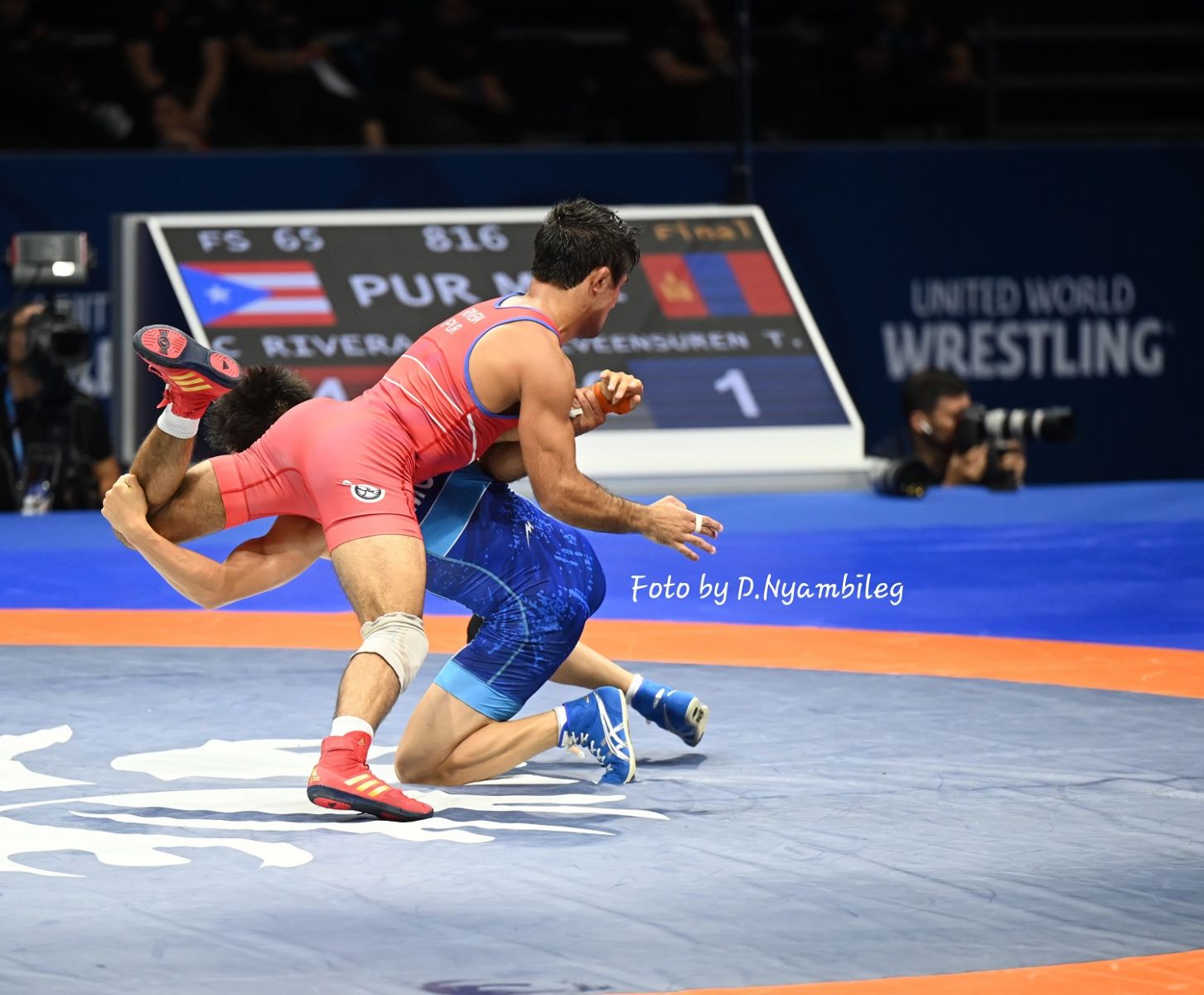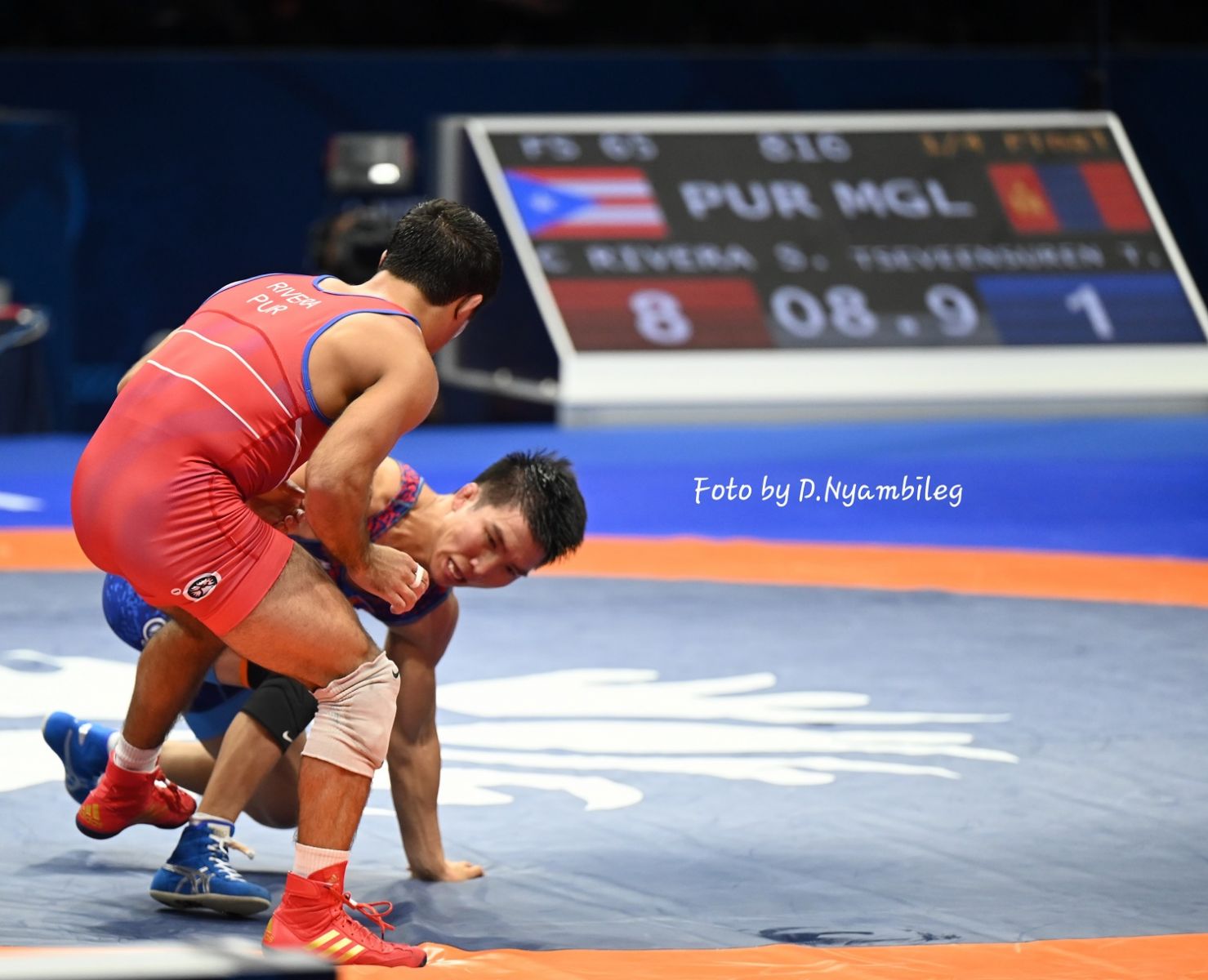 Дайрч дэвжээний захад хэсэг бужигнасан барилдааны дараа шүүгчид өрсөлдөгчид нь 2 оноо өгсөн. Манай дасгалжуулагч челленж мэдүүлж, шүүгч нар хэлэлцсээий эцэст хүлээж авсангүй. Ингээд Пуэрто Рикод нэг оноо орж, дээр нь торгуулийн 9 секунд үлдсэн байлаа. Оноо авч амжаагүй тул ийнхүү нэг дор 4 оноо алдлаа. Үлдсэн хугацаанд оноогоо нөхөх гэж явсаар 1:8 ялагдлаа.