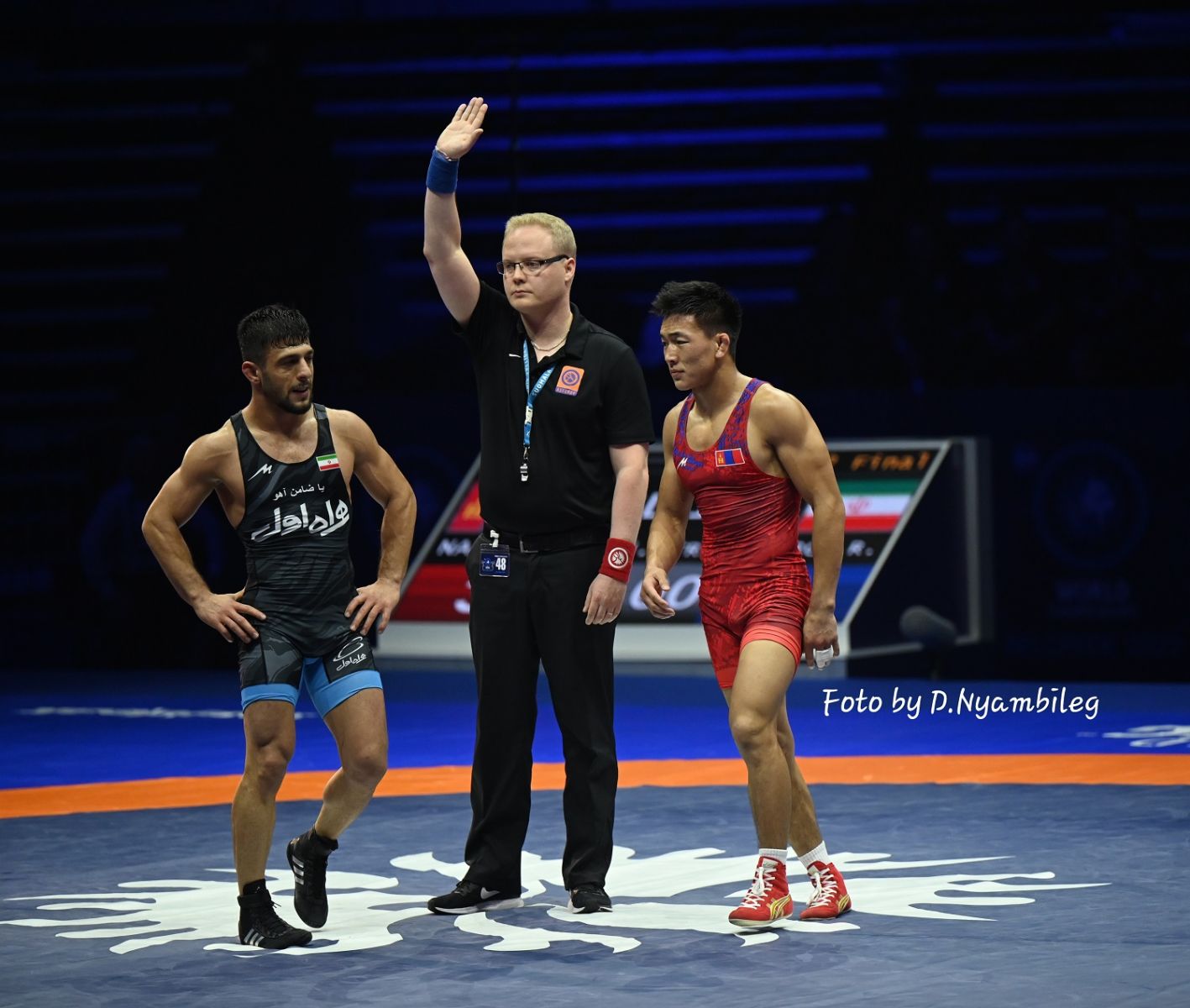 Тэдний ялсан нь Болгарын Георгий Вангеловтой барилдаж, ялсан нь Н.Наранхүүтэй хүрэл медалийн төлөө өрсөлдөнө. Вангелов бол 2016, 2022 оны Европын аваргын хүрэл медальт, 2020 оны Дэлхийн Цомын хүрэл медальтай бөх.